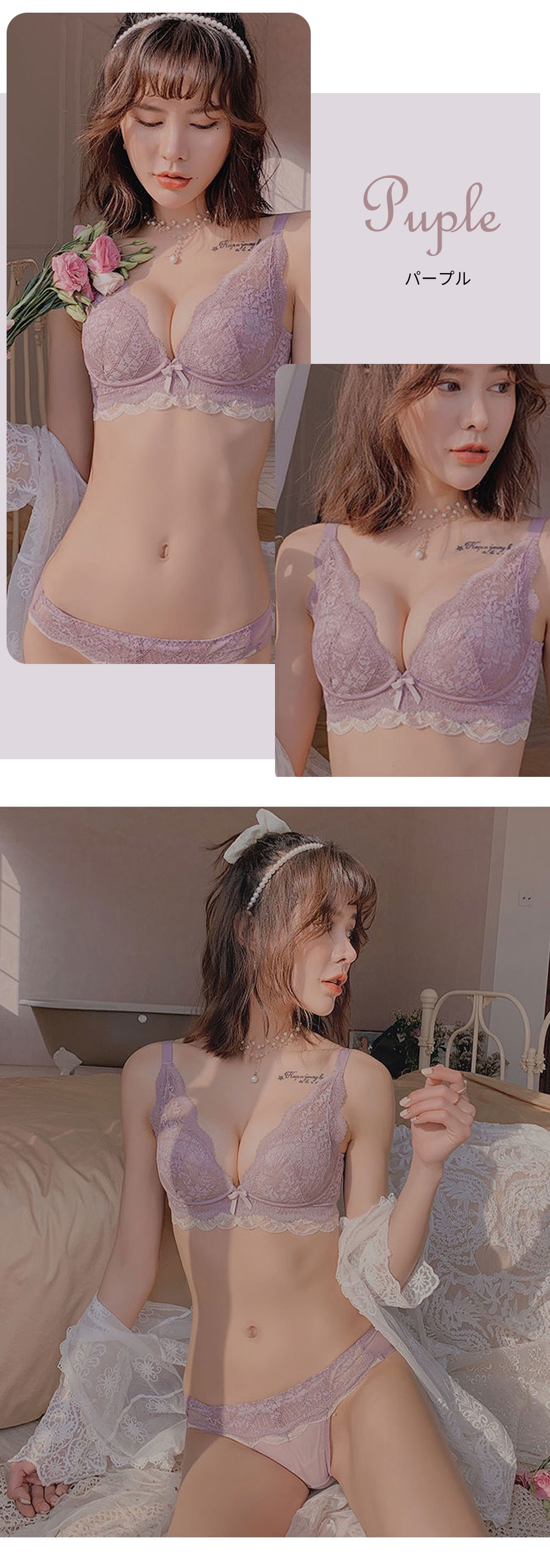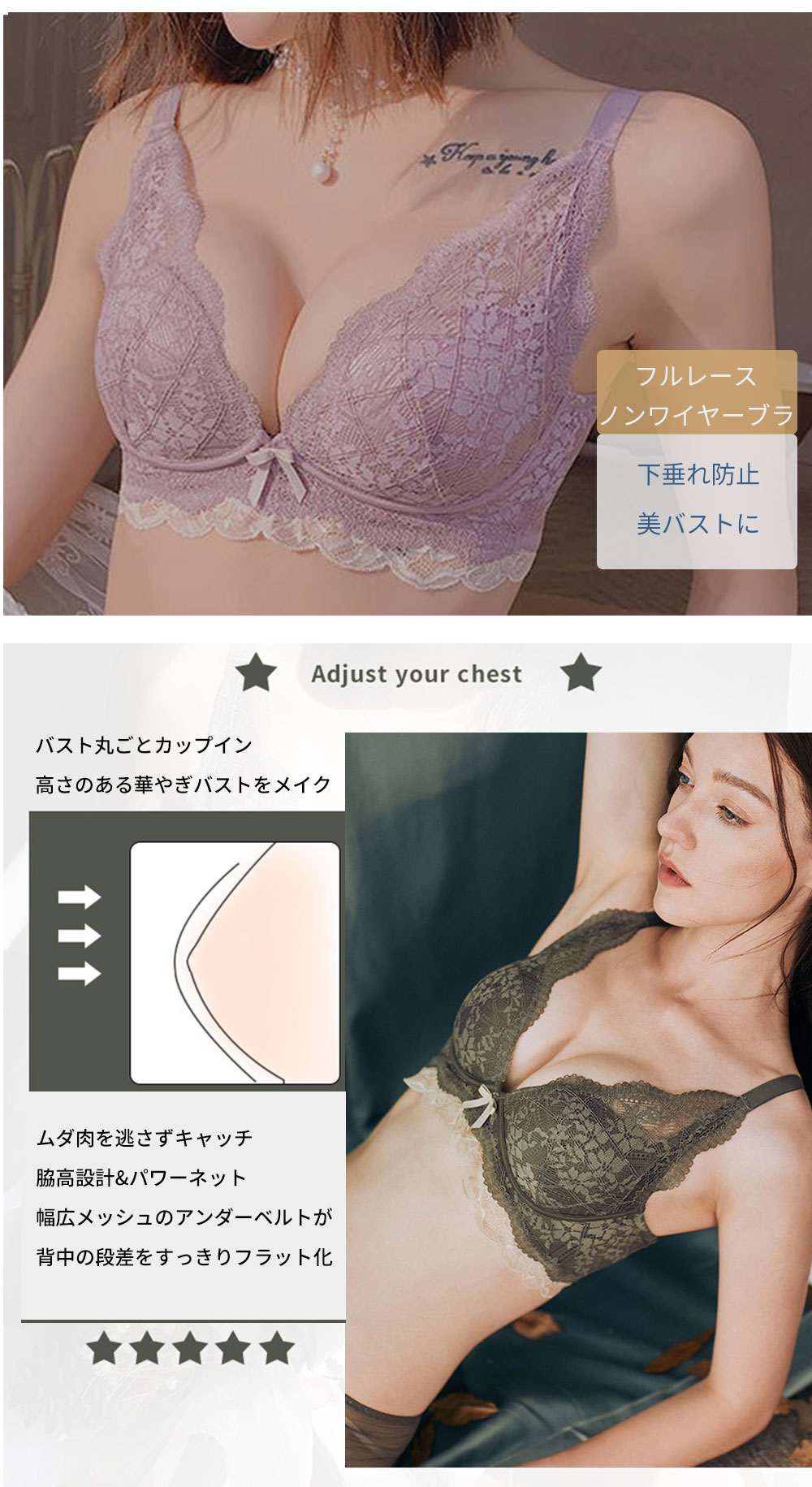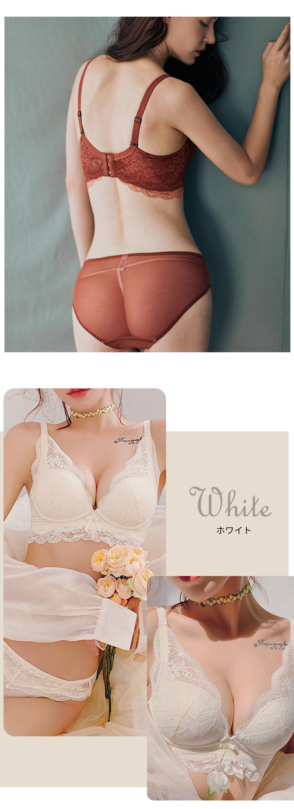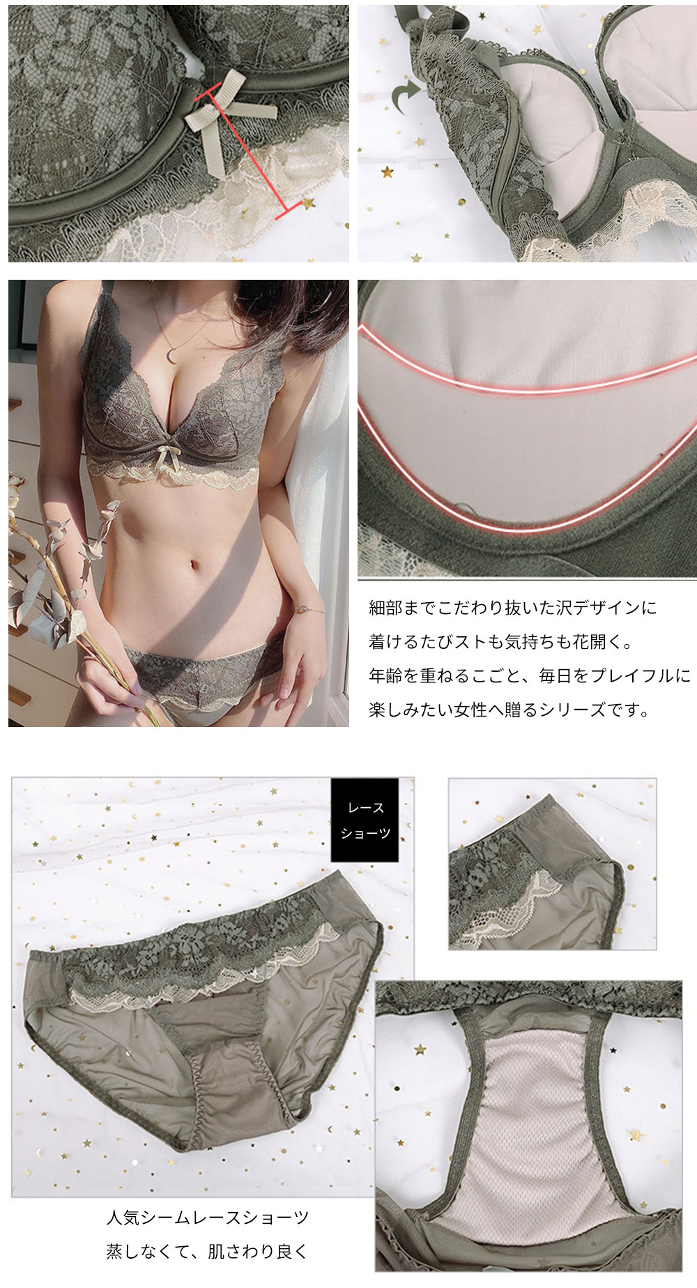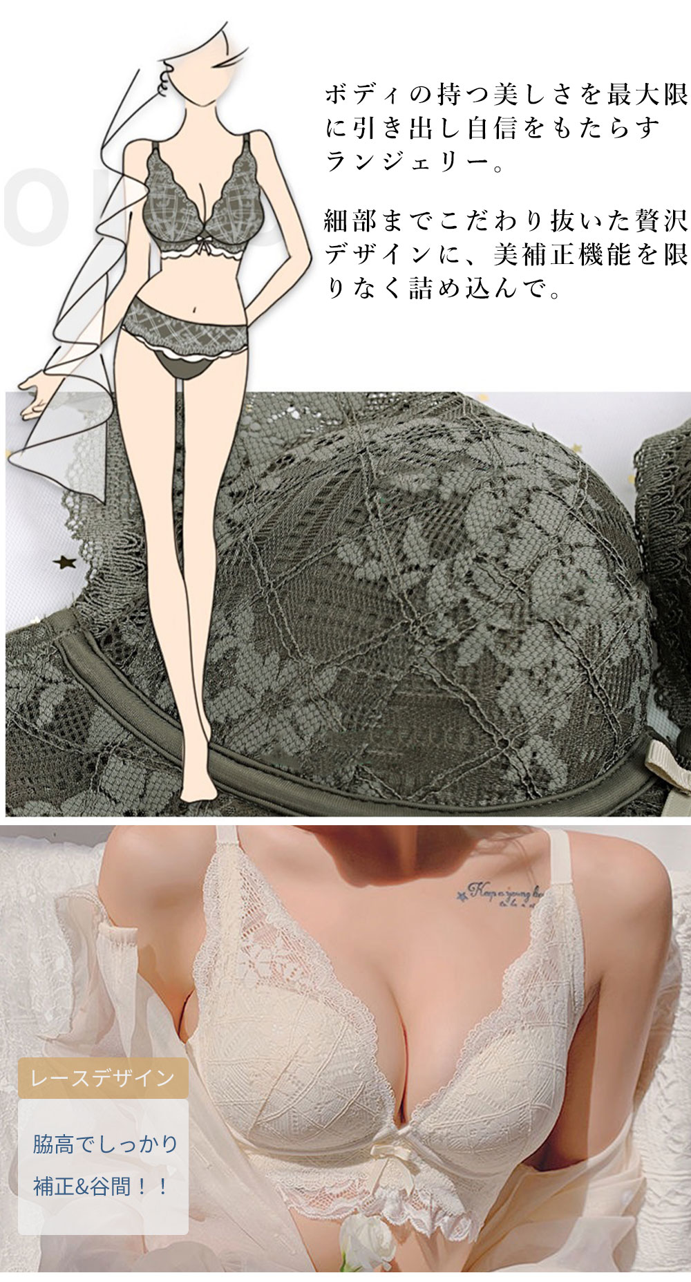 ブラ&ショーツ上下セット 大人レースブラ&ショーツセット ノンワイヤーなのにしっかり盛り 脇高 補正 しっかり 谷間 レース やわらか ノンワイヤー ブラ 美盛 美胸 上下セット