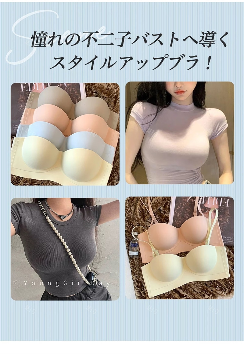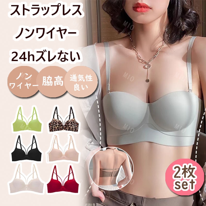 もう手放せない ナイトブラ 2枚セット 育乳 昼夜兼用 ブラ 谷間メイク ブラ 美胸ノンワイヤーブラジャー 紐無しストラップレス 対応 シームレスブラ 結婚式 オフショル インナー