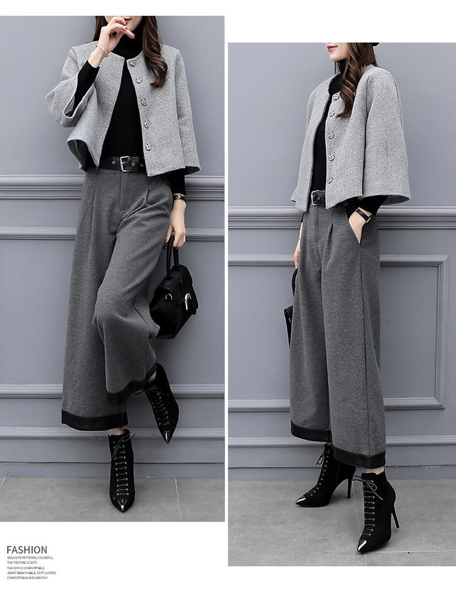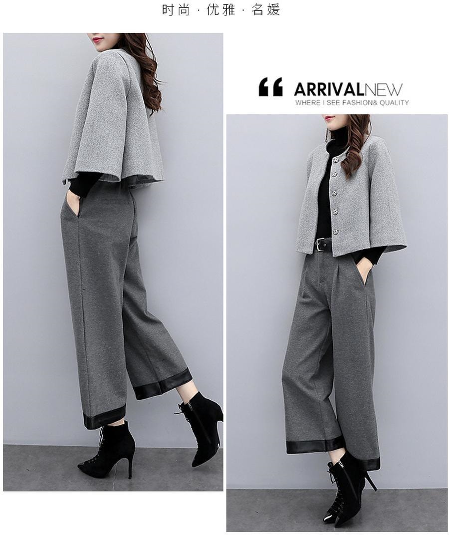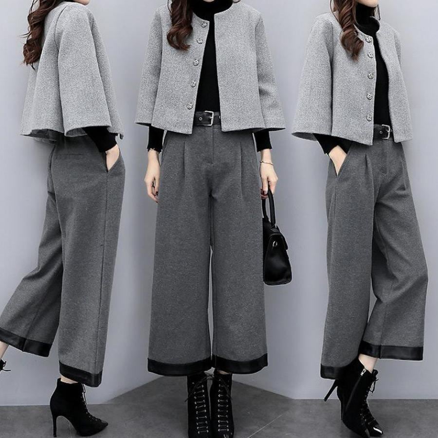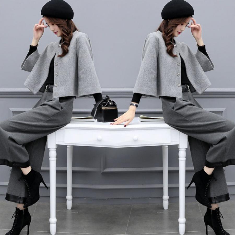 楽ちんょセットアップ 2022秋冬ビッグサイズ セットパンツウールショートジャケットワイドパンツカジュアルファッションスーツ女性 セットアップ