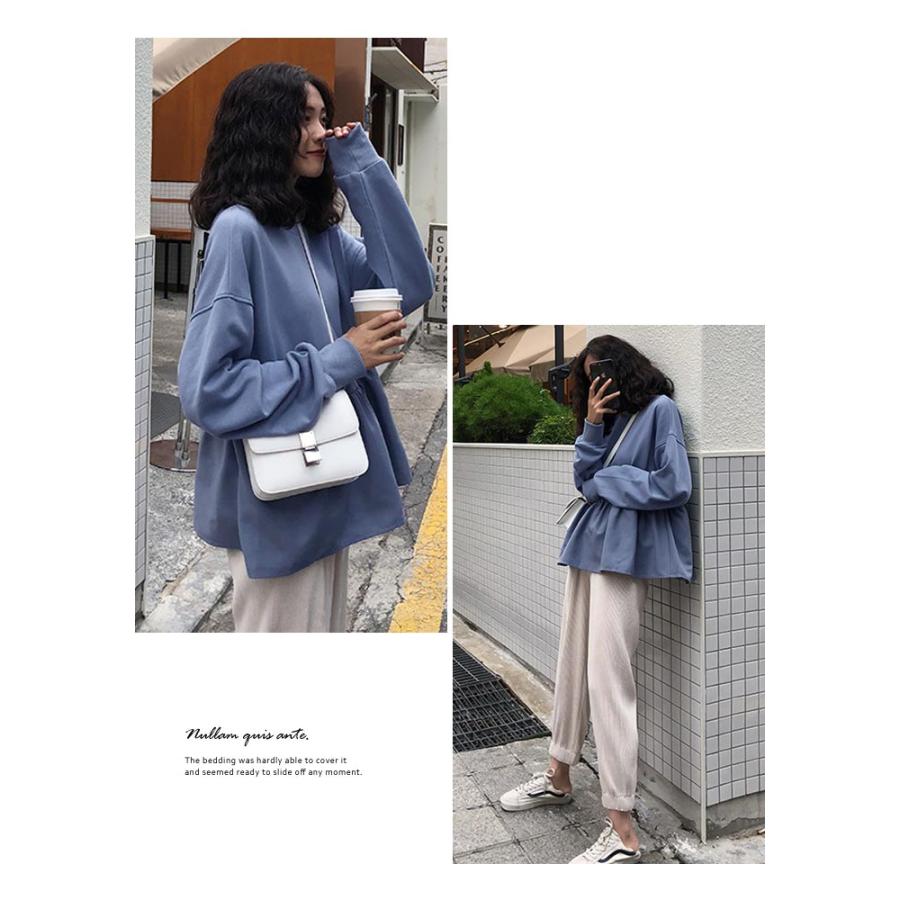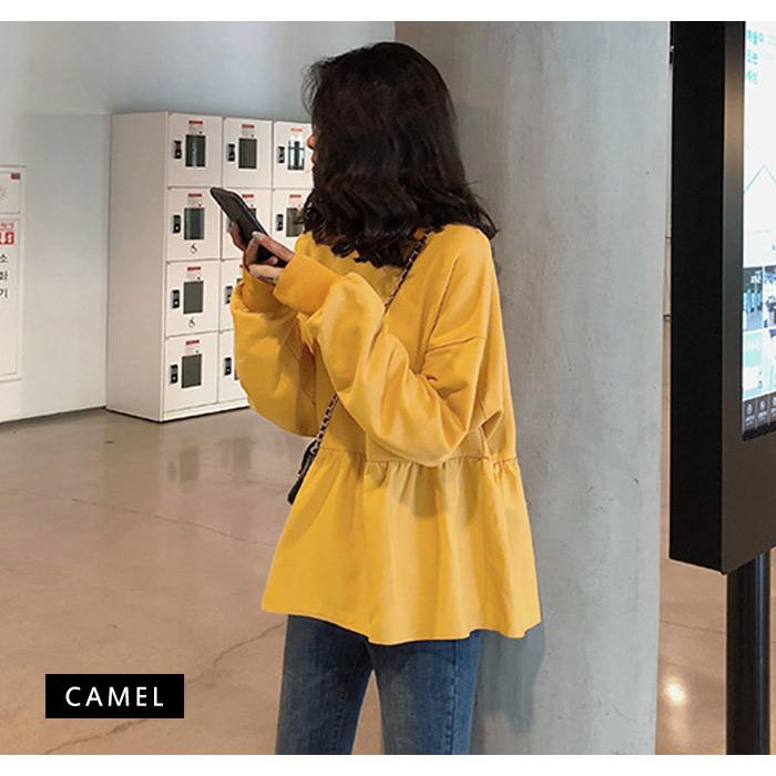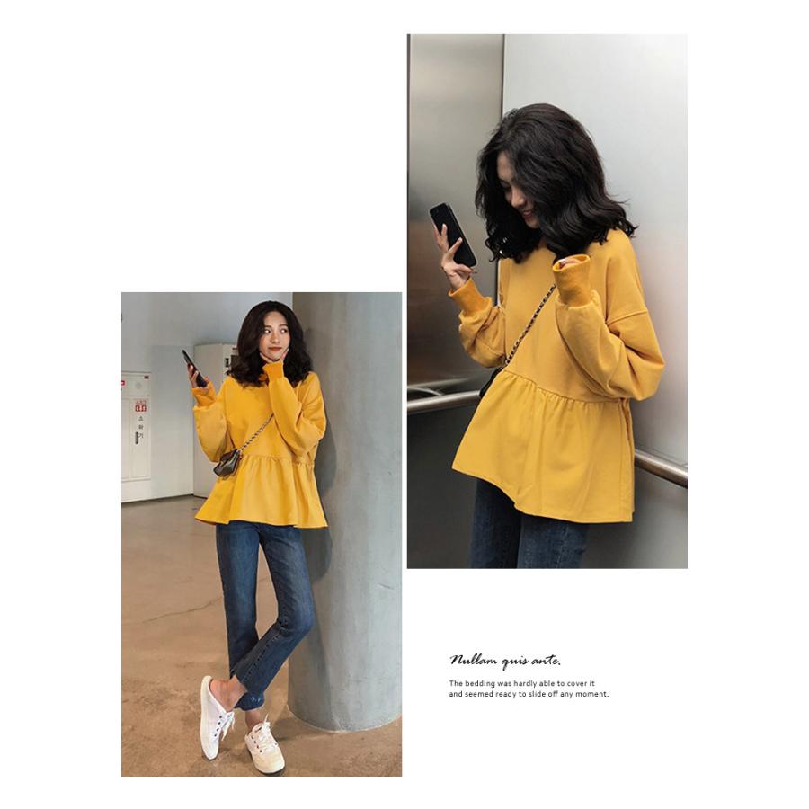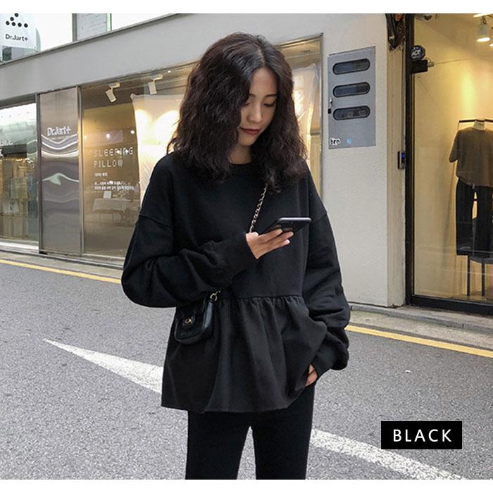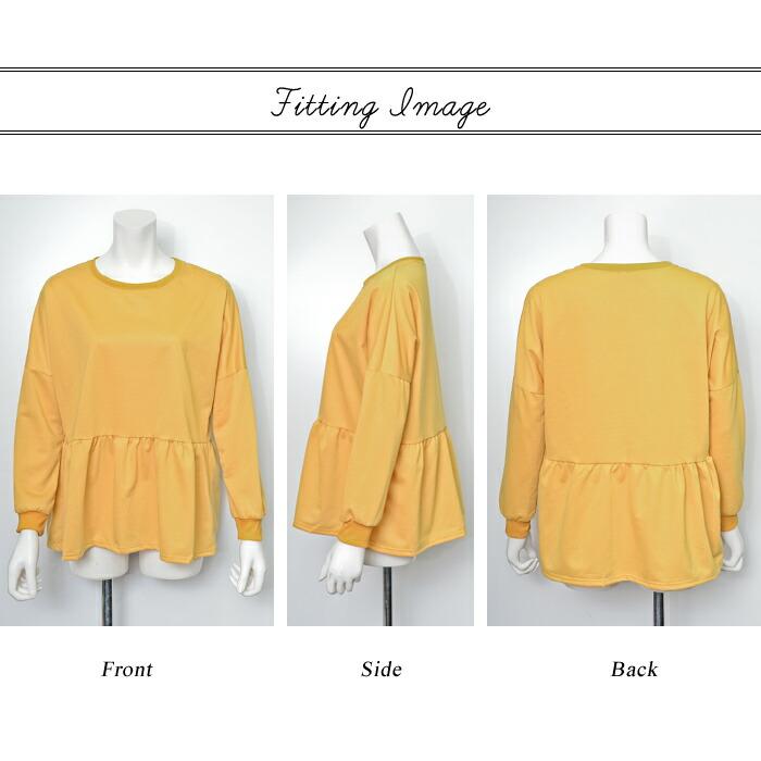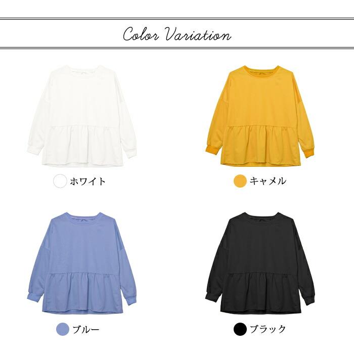 スウェット レディース 春 白 黒 トレーナー カットソー ホワイト ブラック キャメル ブルー トップス 長袖 チュニック ペプラム 20代 30代