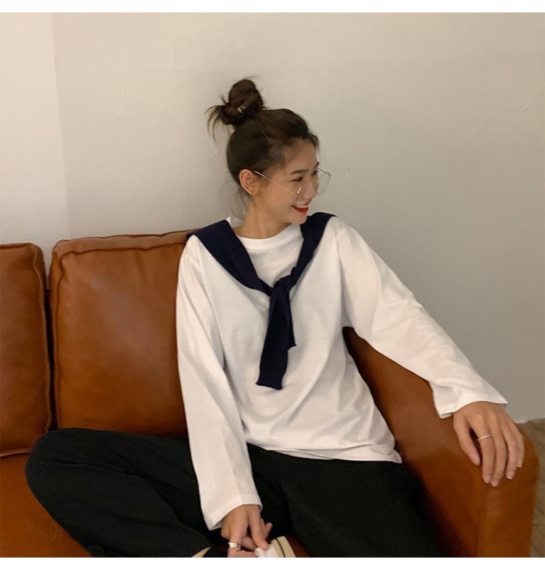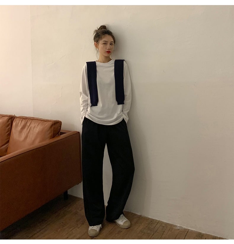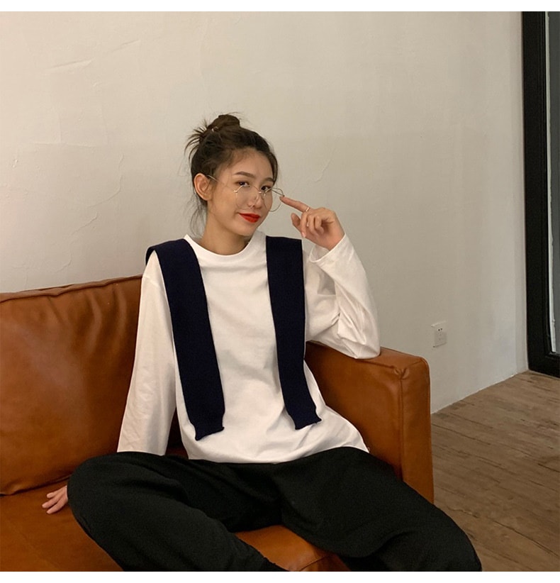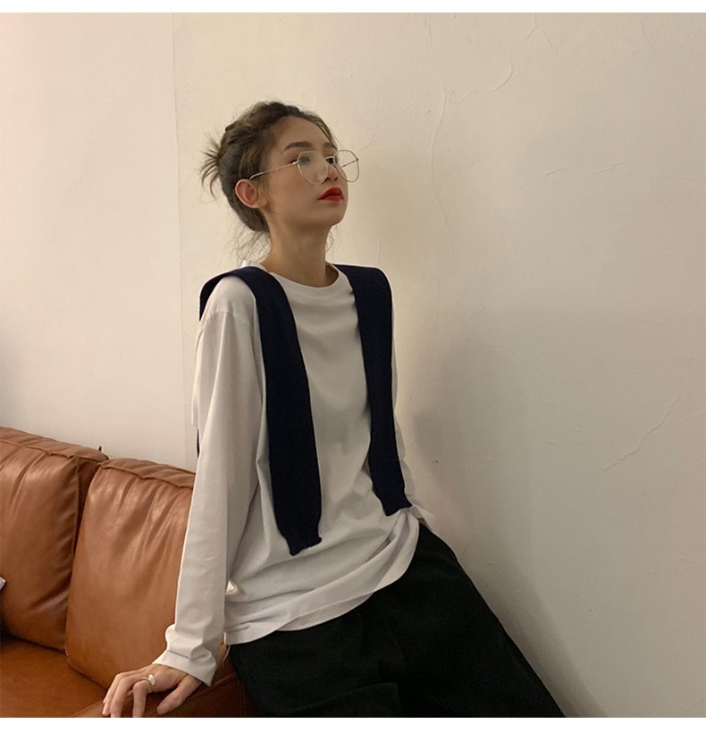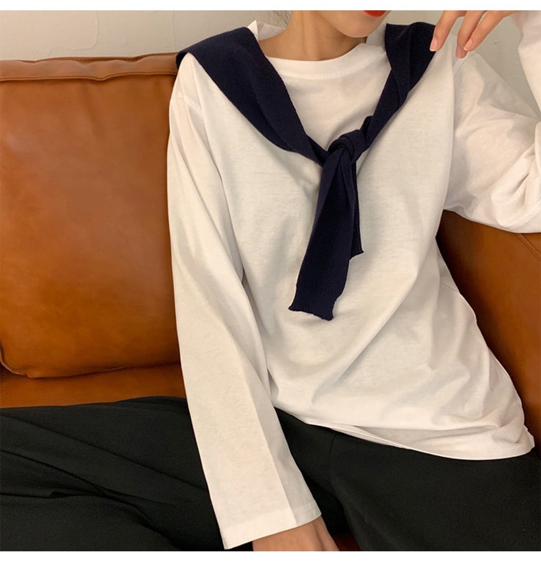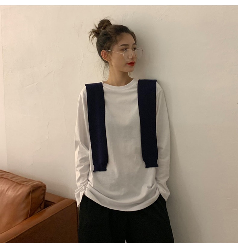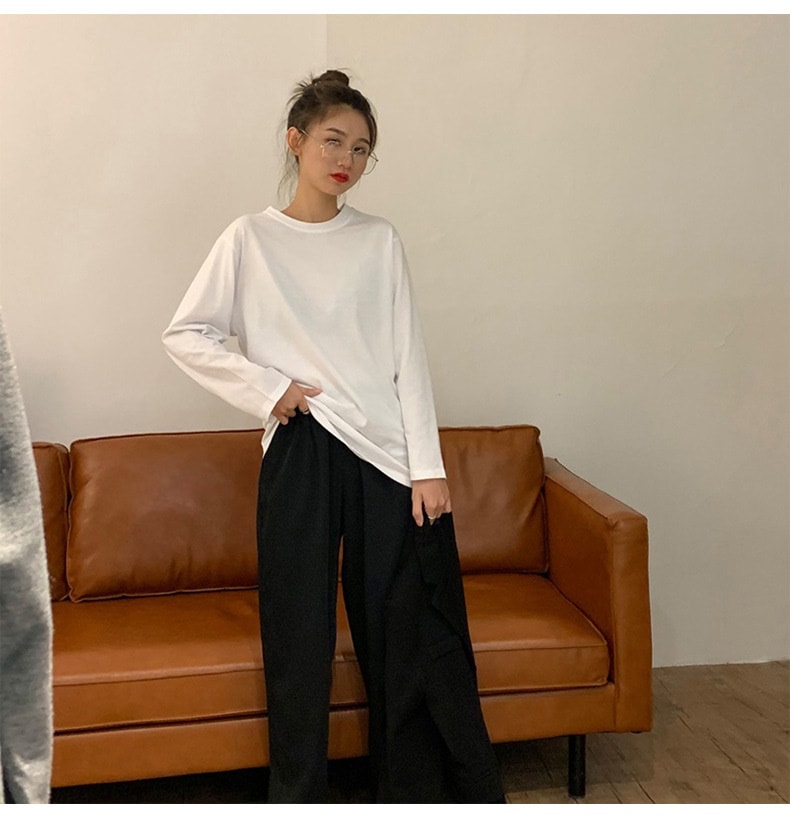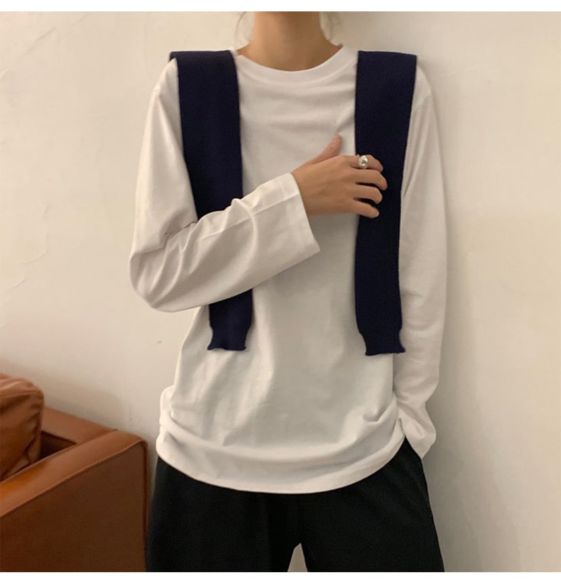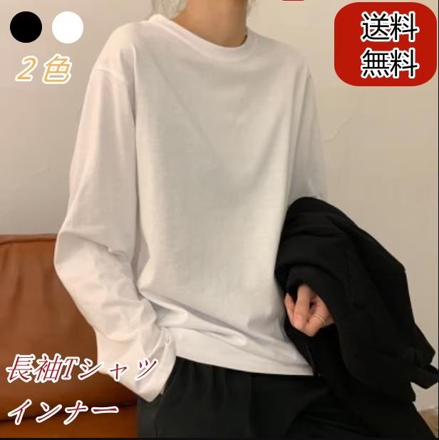インナー Tシャツ ワンポイント 長袖T ロンT 丸首 韓国ファッション レディース服 無地の長袖tシャツ ホワィト ブラック トレーナー