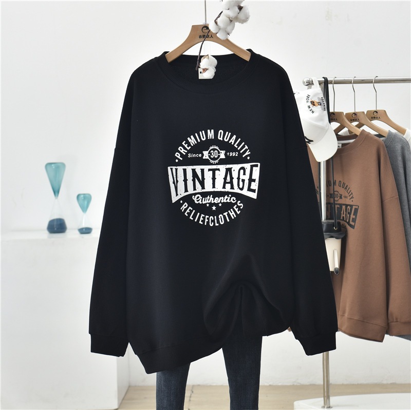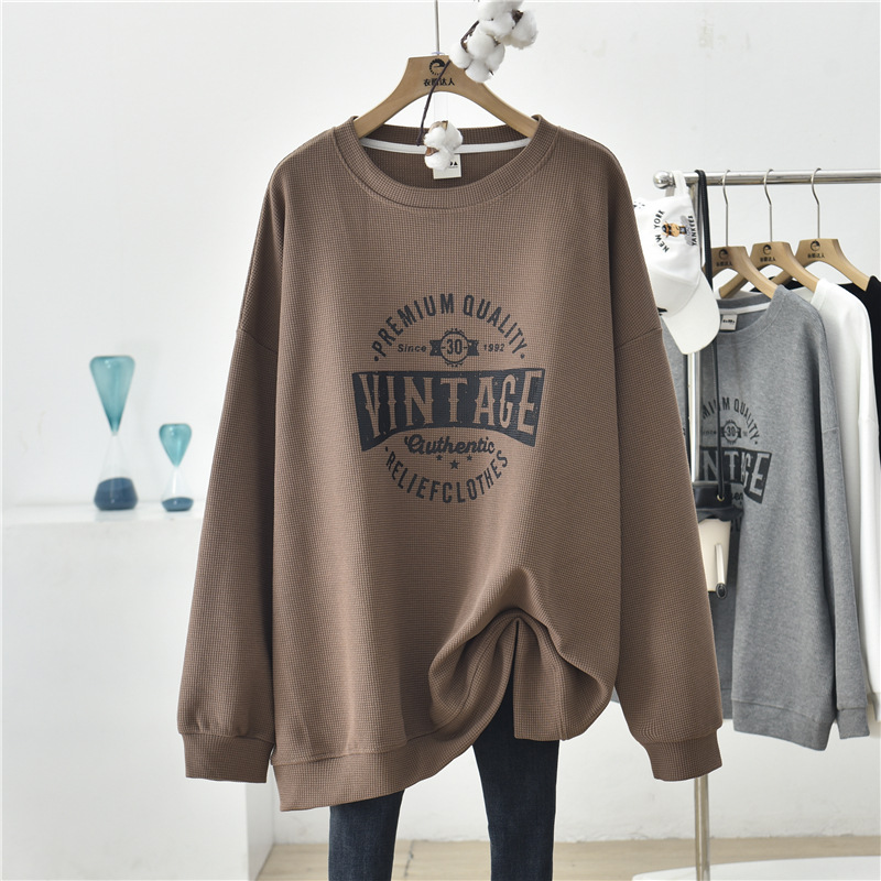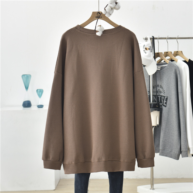 2025秋冬服 スウェット ワッフルチェック 長袖 大きいサイズ ゆったり スリム カジュアル 百掛け レディーストップス トレーナー
