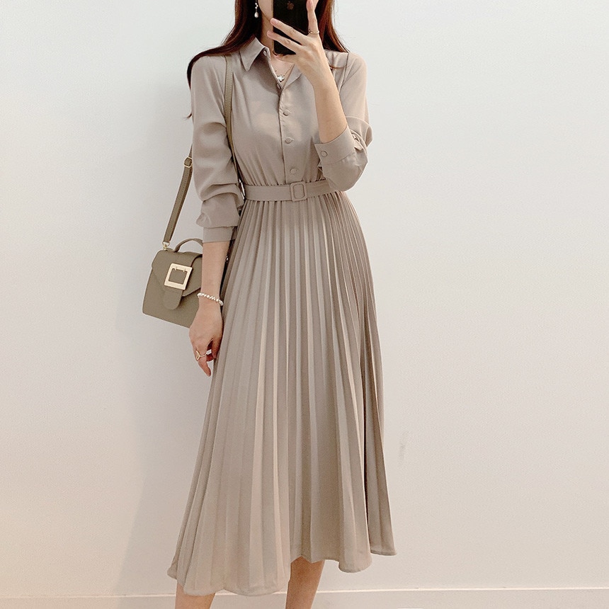 本日の限定商品 シフォンワンピース 韓国 2025 新作 ワンピース 着痩せ バブル袖 シャツワンピース シャツワンピ