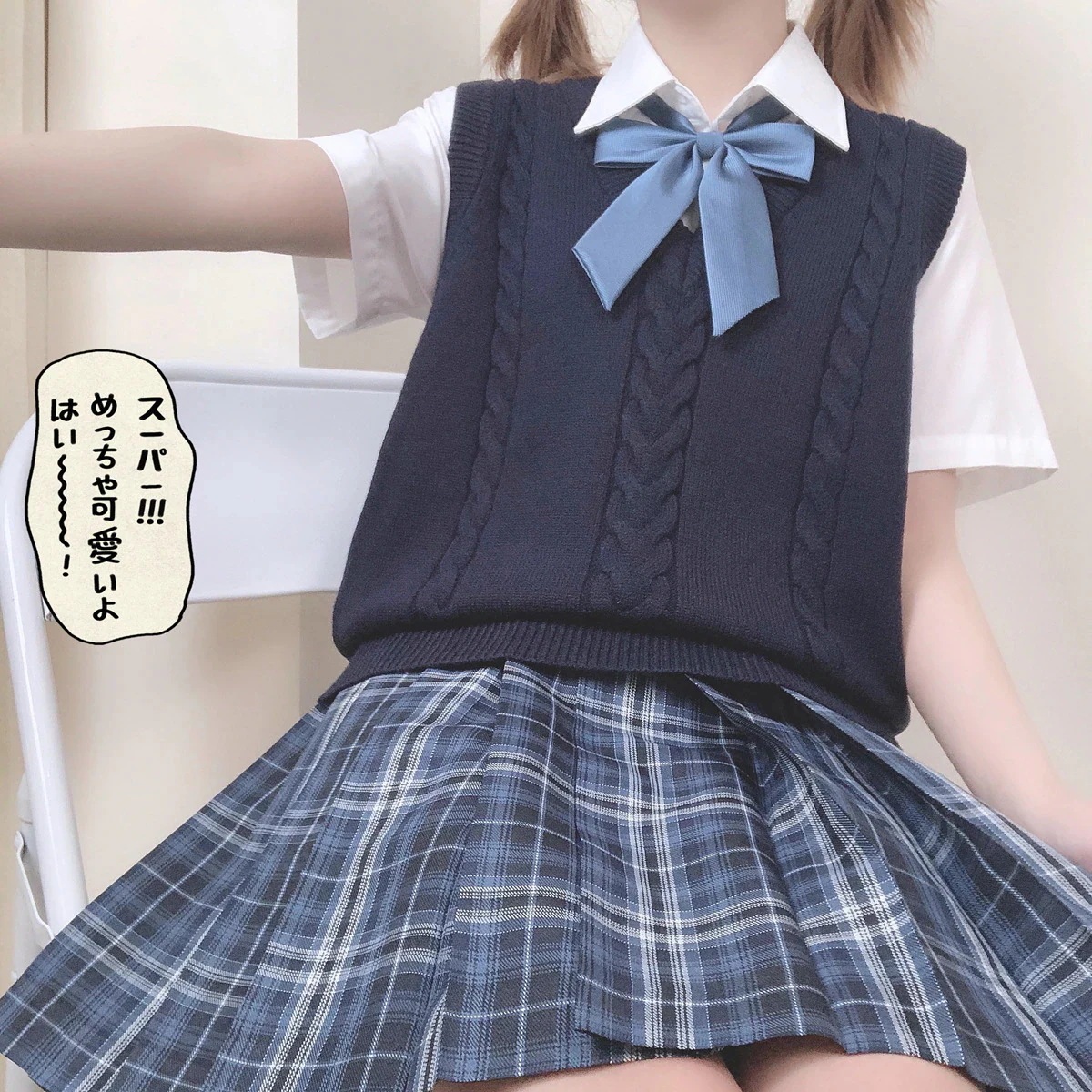 25 スクールベスト ニットセーター ネイビー 女子高生 制服 学校コスプレ ニット