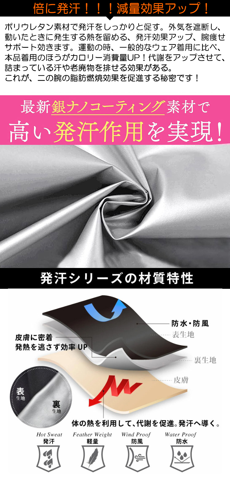 【自宅、ジム】お肉が落ちにくい二の腕をピンポイントに集中発汗!ダイエットを応援する腕専用発汗ベルト、ジムでのトレーニングやランニング、ウォーキングにはもちろん、家事などの日常生活でもご使用いただけます。いつもの運動にプラスワンするだけの簡単発汗シェイプで、運動パフォーマンスアップをサポートします。