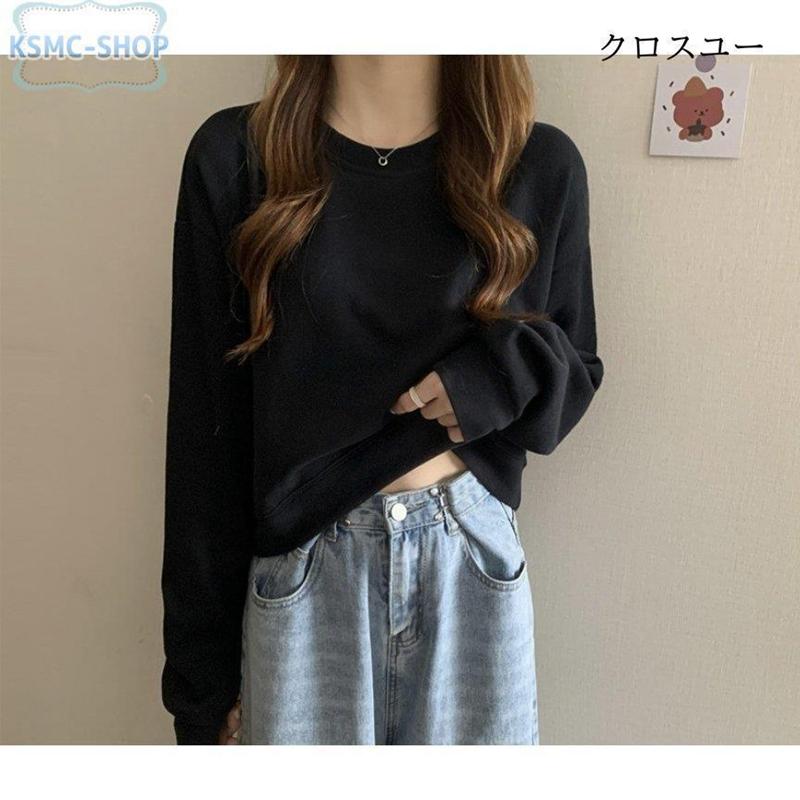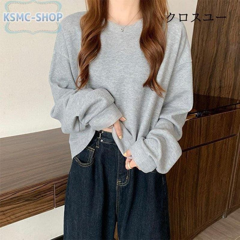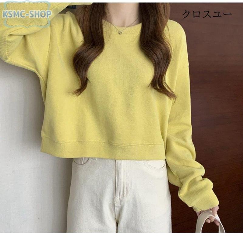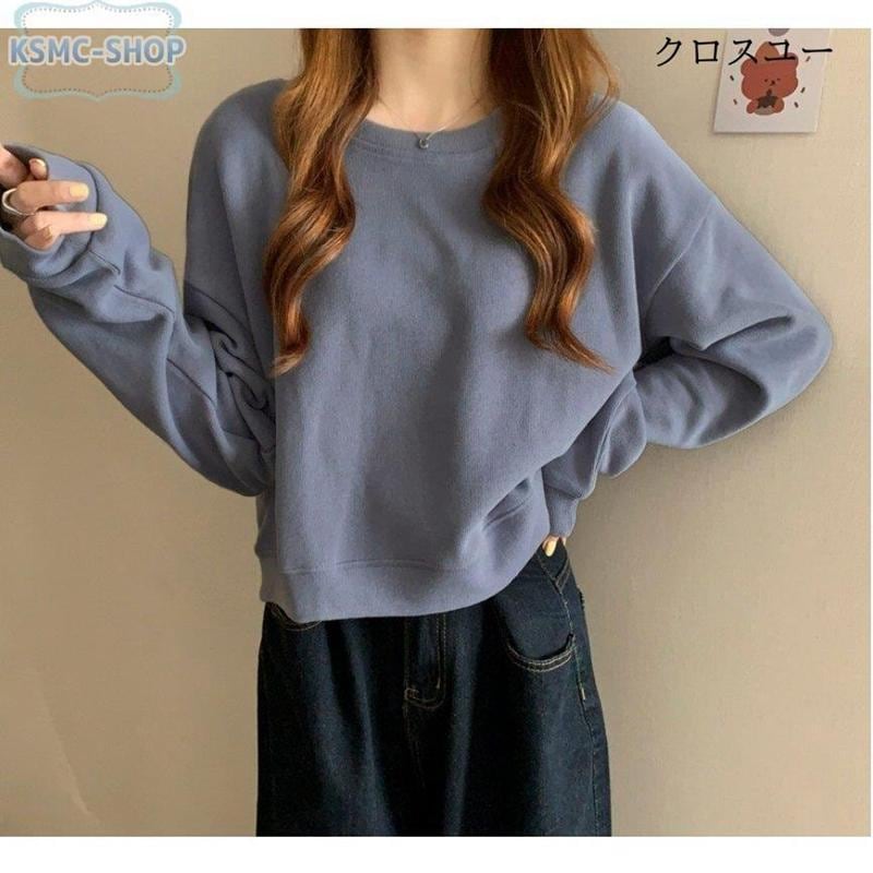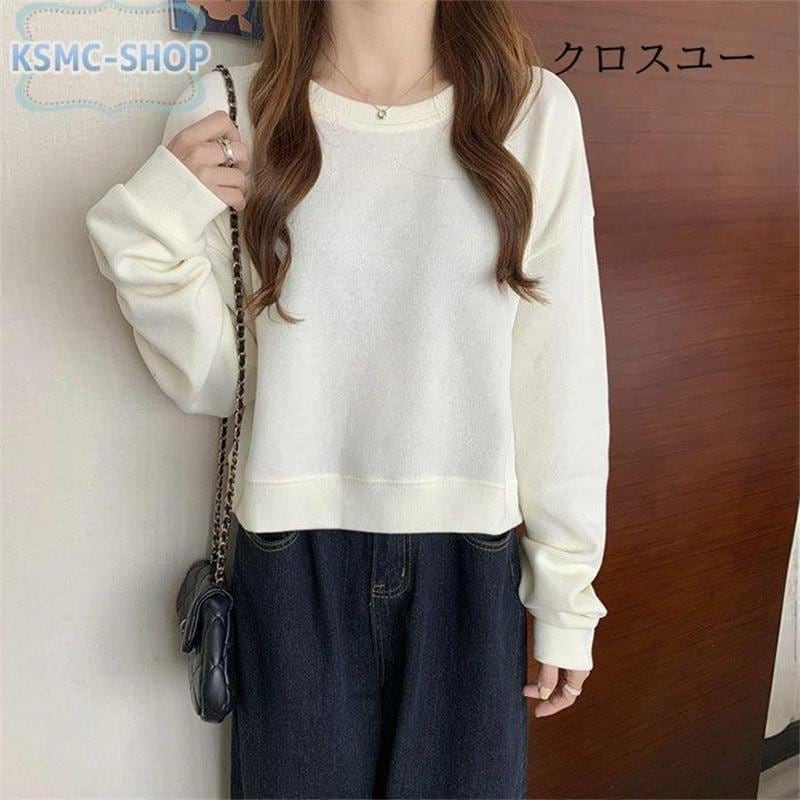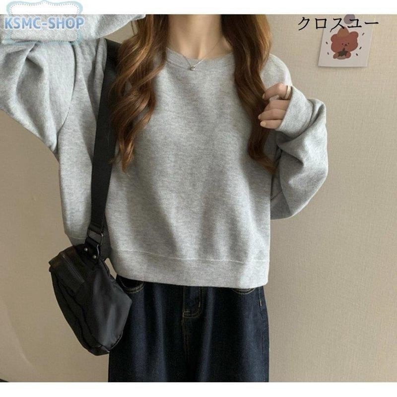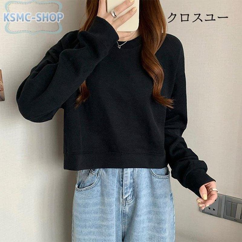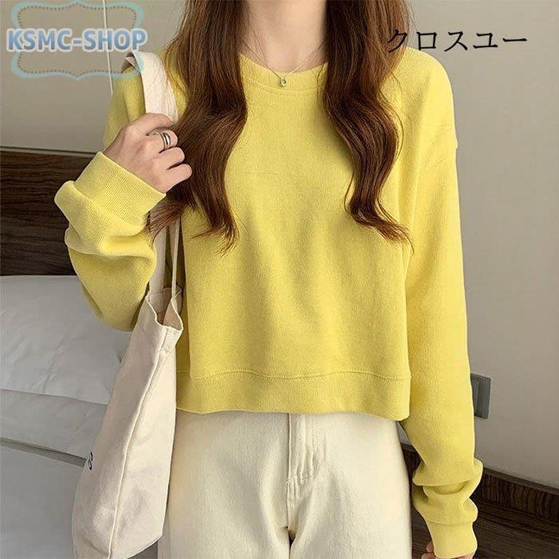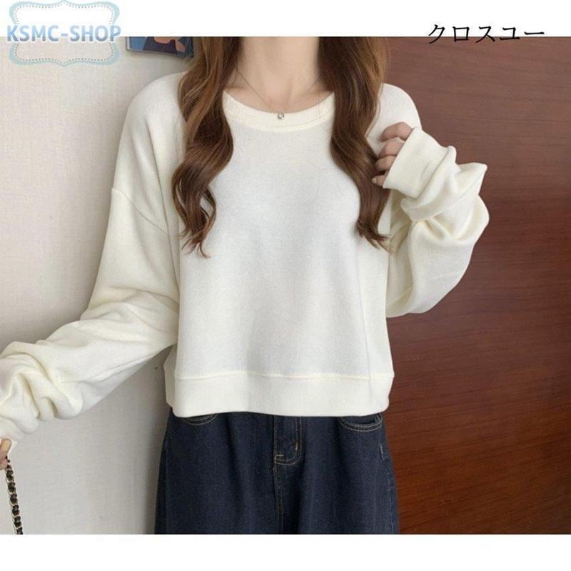 トレーナー レディース トップス 無地 短め 長袖 秋服 冬服 シンプル カジュアル 大人 秋 冬 かわいい 30代 トレーナー