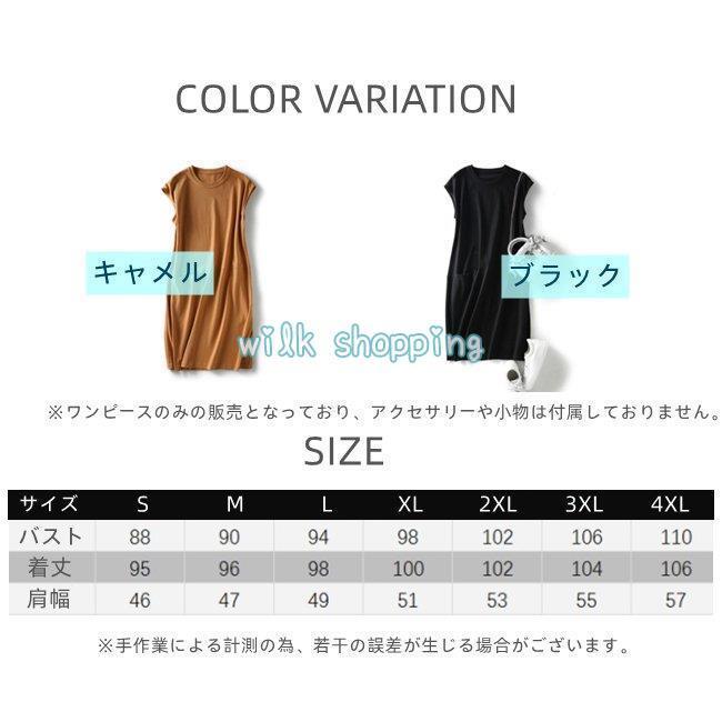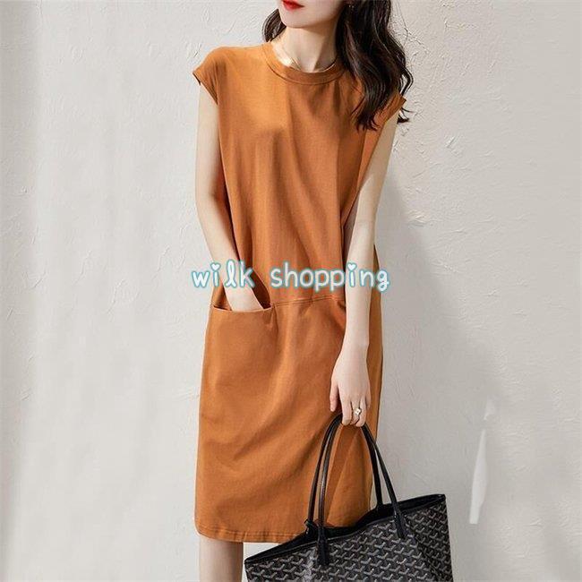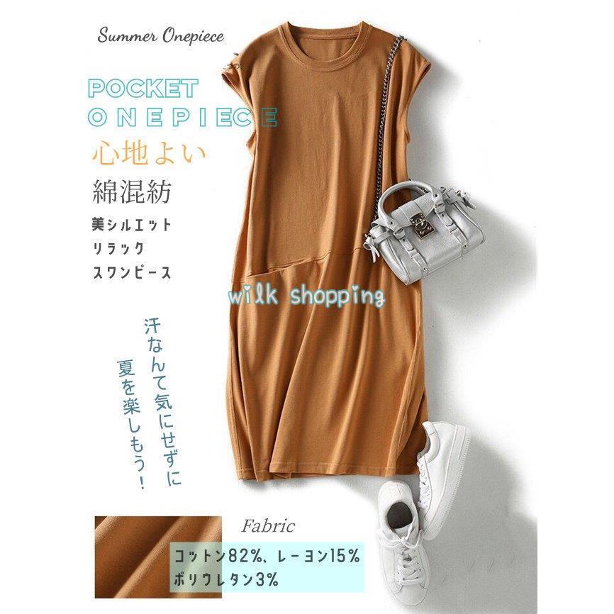 ワンピース Tシャツ レディース 綿 綿混紡 大きいサイズ ゆったり 春夏 ロング丈ビッグポケット ノースリーブ その他 ワンピース ドレス