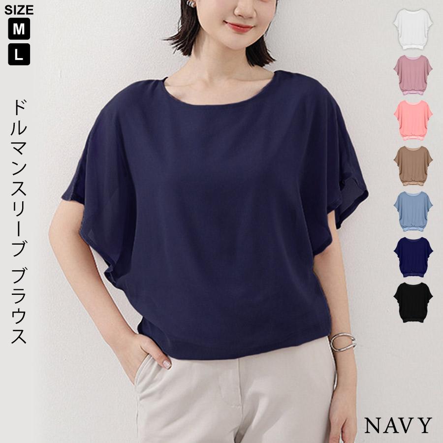 ブラウス レディース 春 夏 春夏 黒 白 無地 シャツ チュニック ドルマン トップス ブルー ネイビー オフィス ホワイト ブラック ベージュ ピンク