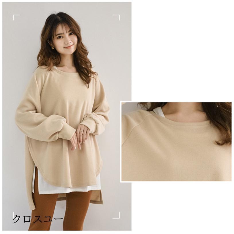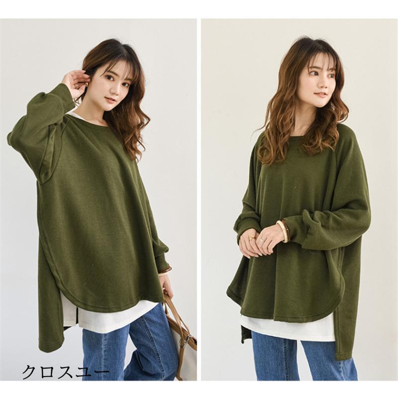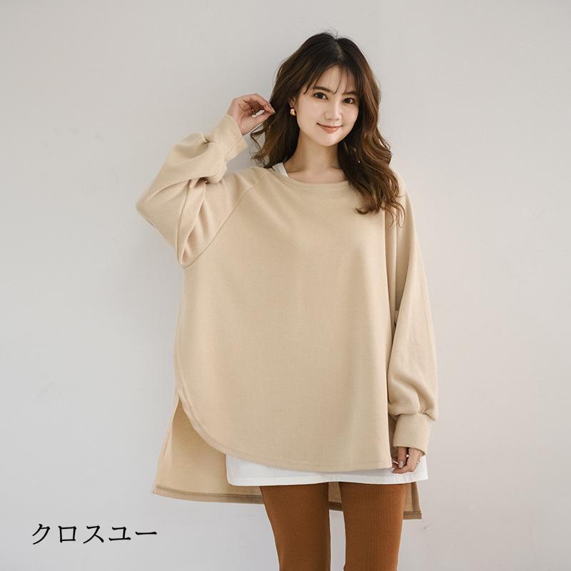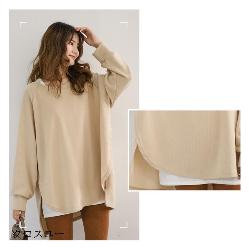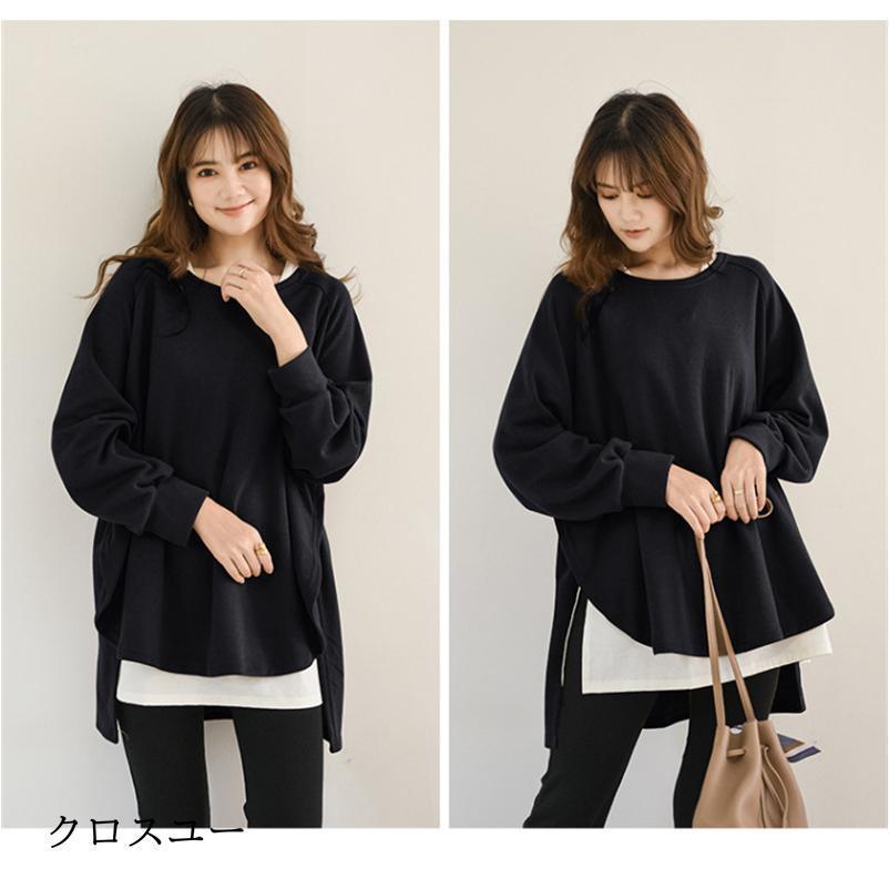 トレーナー レディース 長袖 カットソー スウェット 春秋 重ね着風 トップス スリット カジュアル パーカー 通勤通学着痩せ ゆったり プルオーバー