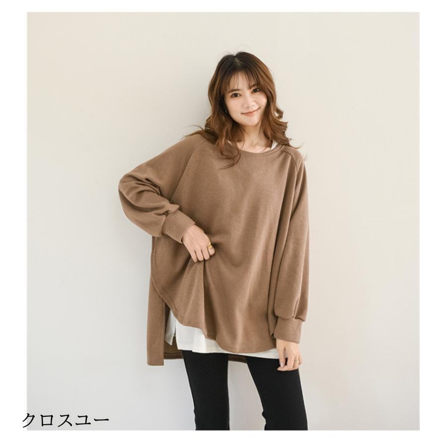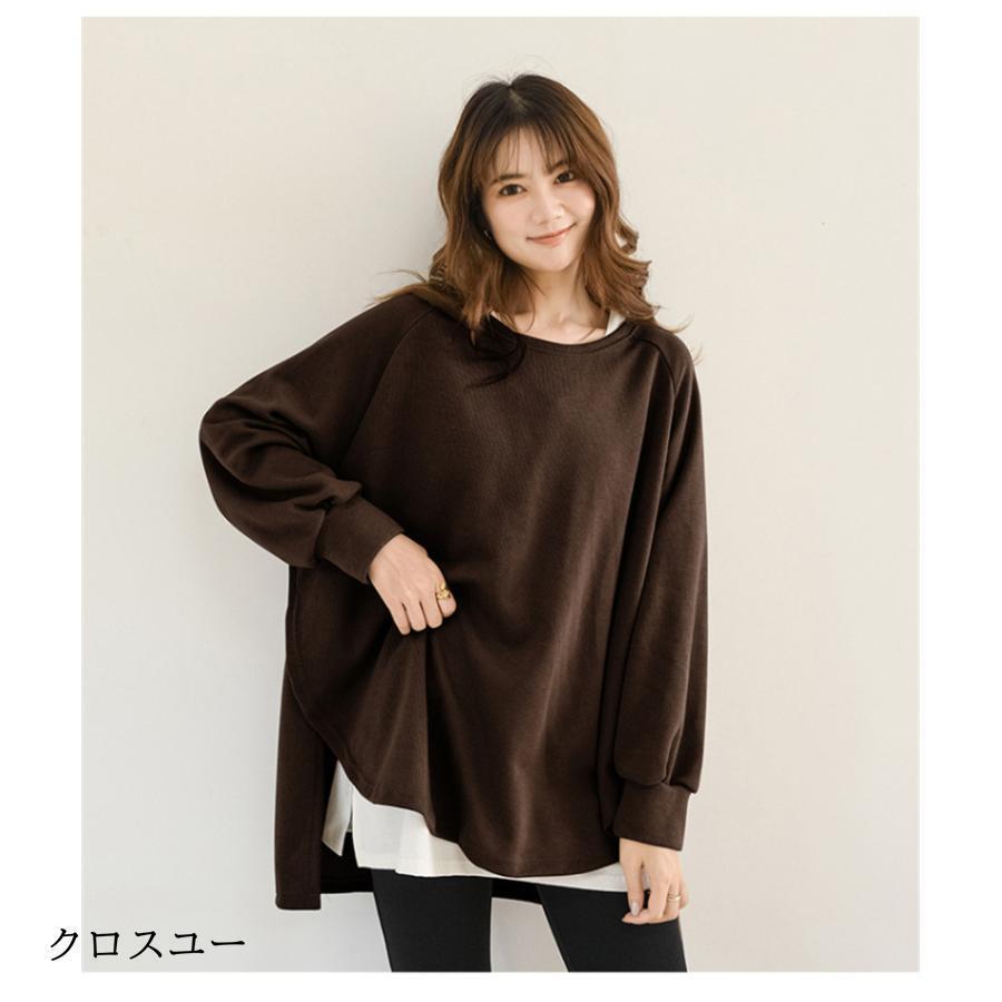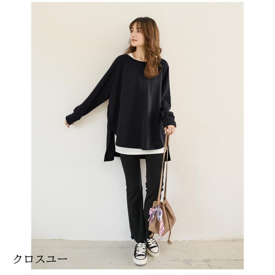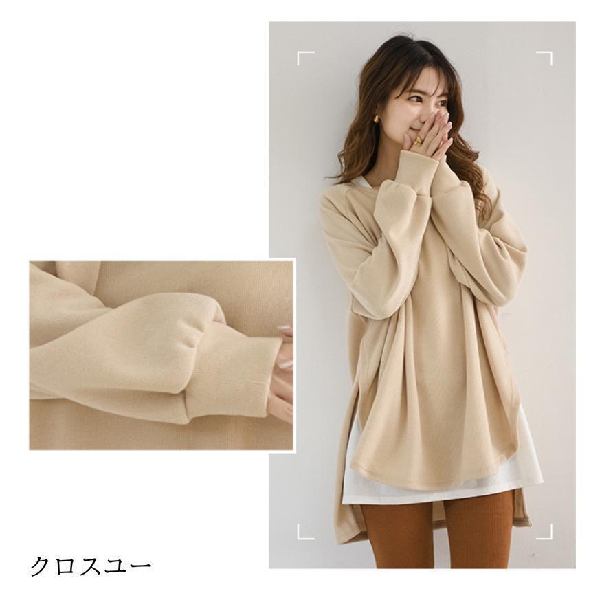 トレーナー レディース 長袖 カットソー スウェット 春秋 重ね着風 トップス スリット カジュアル パーカー 通勤通学着痩せ ゆったり プルオーバー