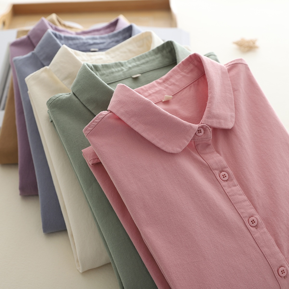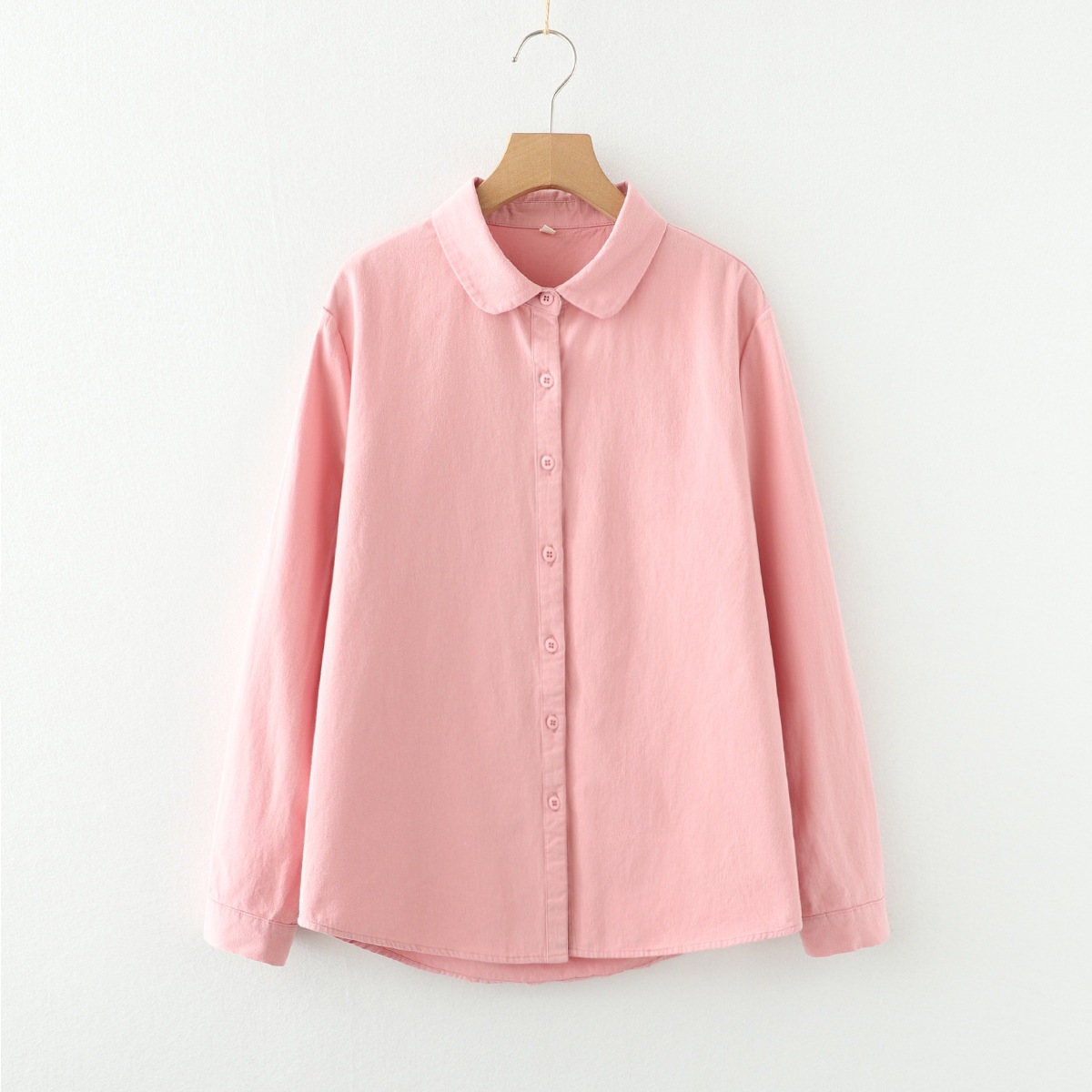 メーカー直販棉磨毛日系人形襟純色春秋長袖シャツ百合婦人シャツ シャツ ブラウス