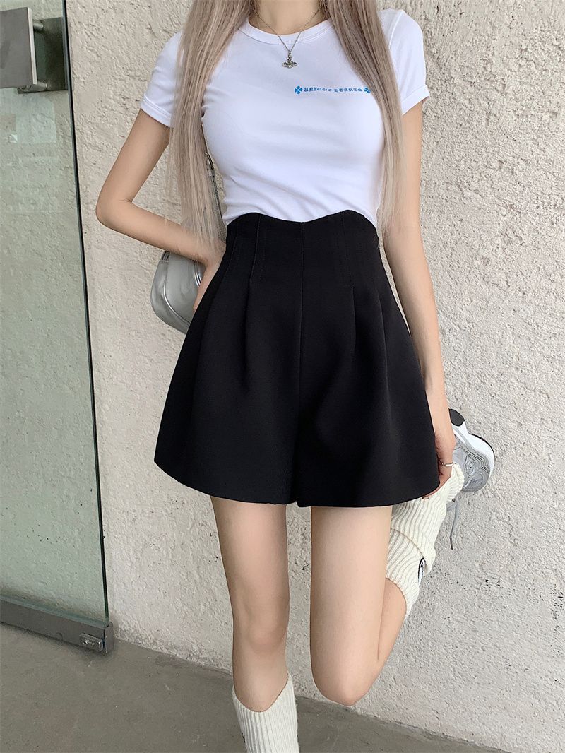 脚見せショートパンツ 2024夏大きいサイズワイドレッグパンツレディースハイウエストアウタースリムaラインフラワーショートパンツカジュアルパンツ 着痩せ 通勤 韓国ファッション