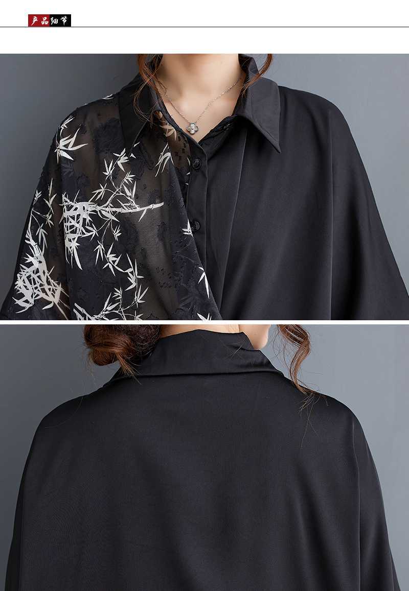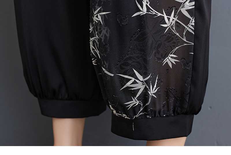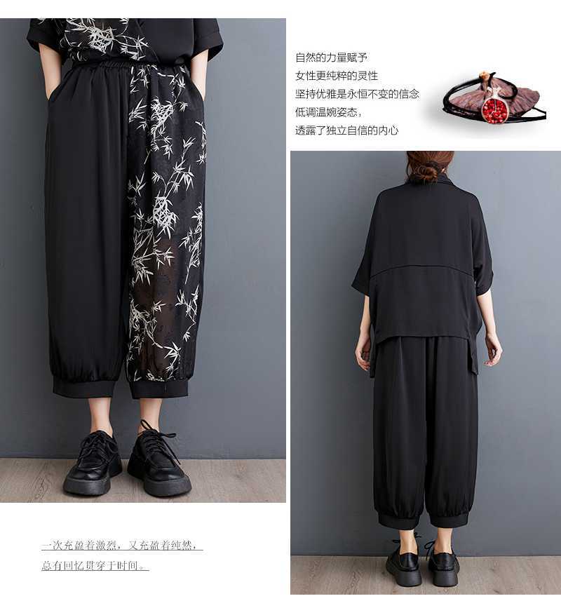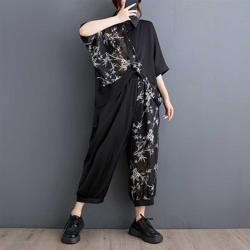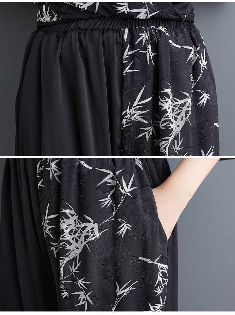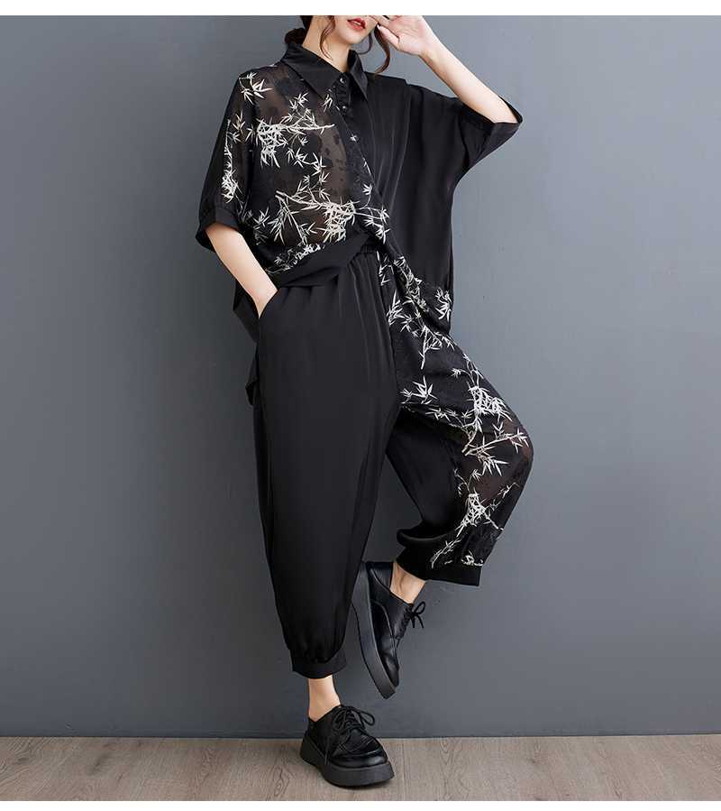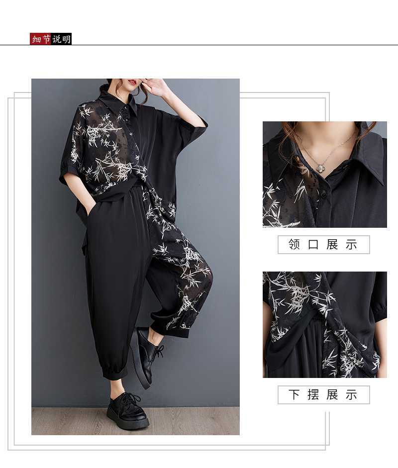 2025夏新品 上下セット 竹柄 七分袖ブラウス+九分丈ワイドパンツ 大きいサイズ 体型カバー レディース セットアップ メガ割