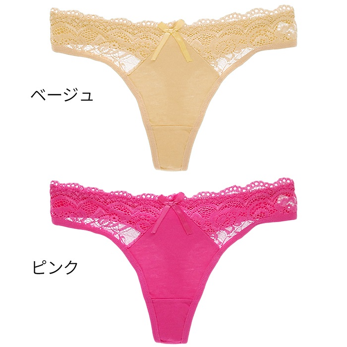 Tバック レディース 綿95% リボン レース セクシー ストレッチ 伸縮性 おしゃれ コットン パンティ インナー 下着 黒 白 緑 水色 M L XL rt-020