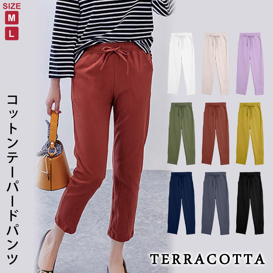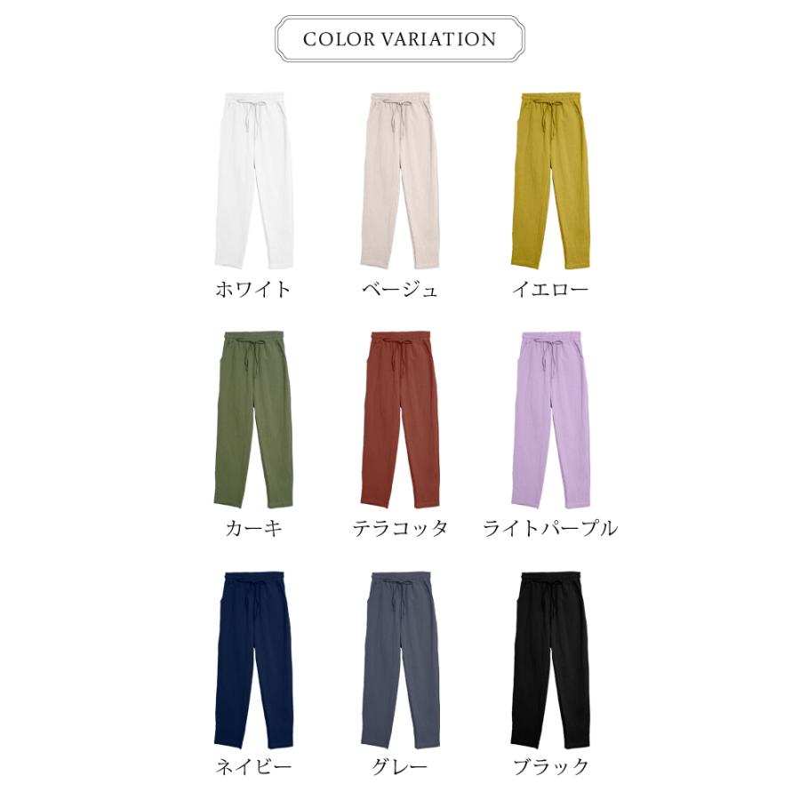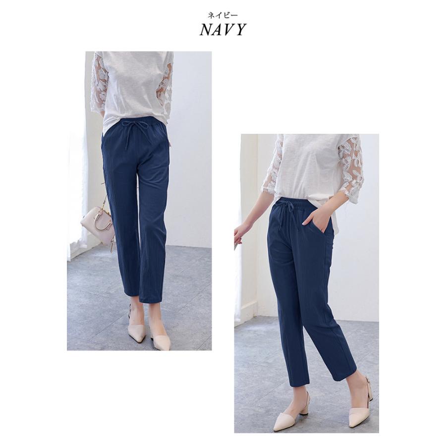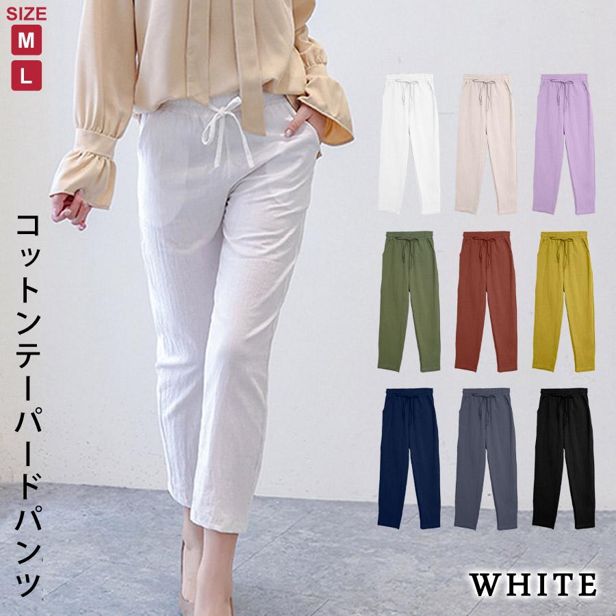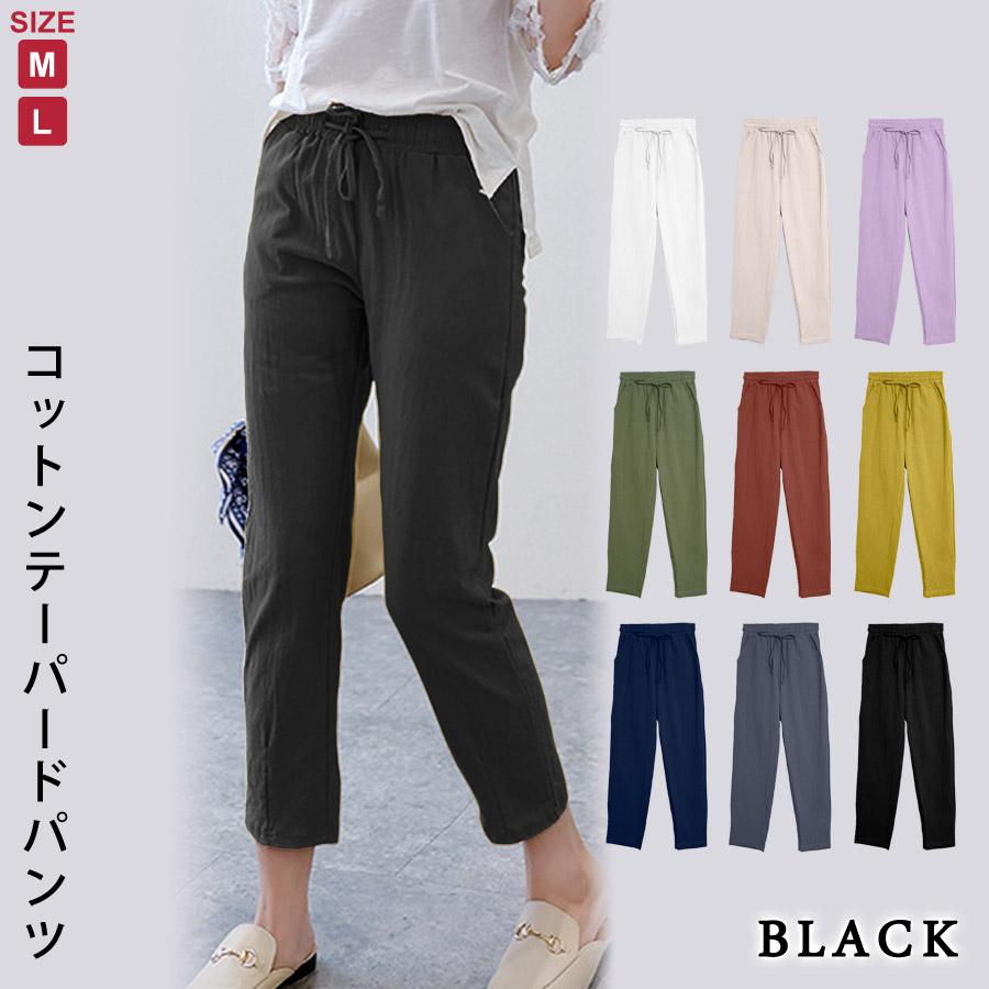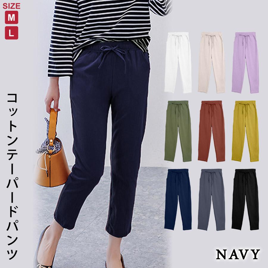テーパードパンツ レディース 春 黒 白 パンツ クロップド ウエストゴム7分丈 無地 ネイビー グレー ブラック ホワイト ベージュ カーキ