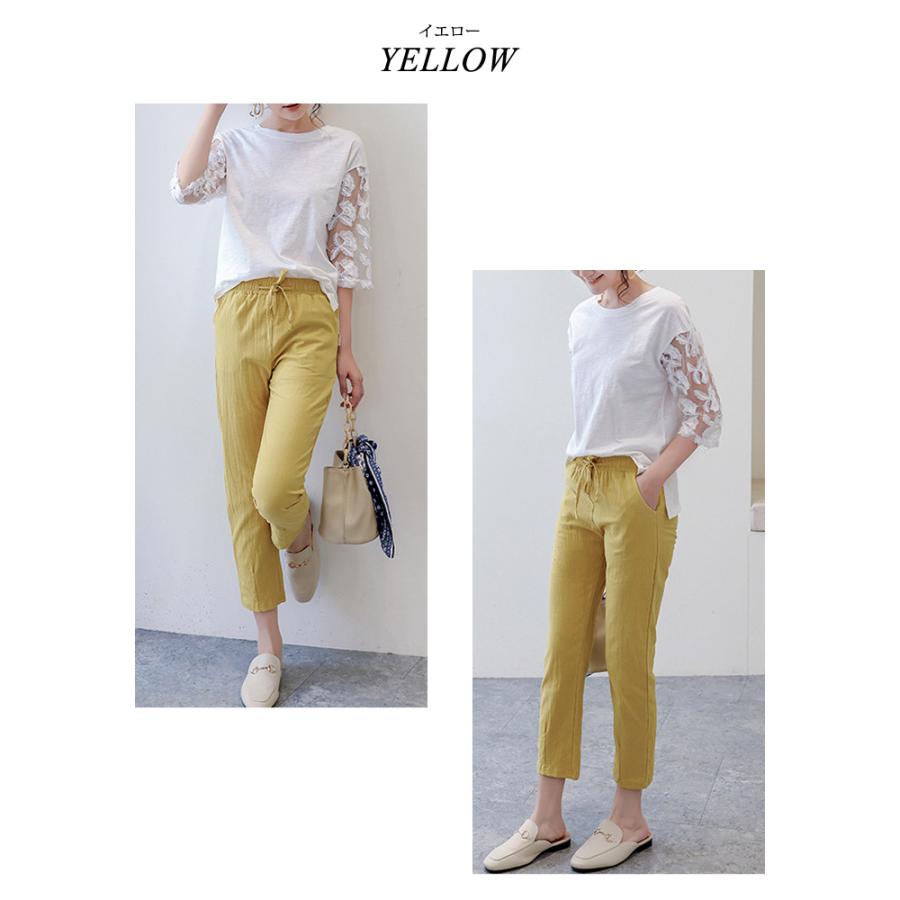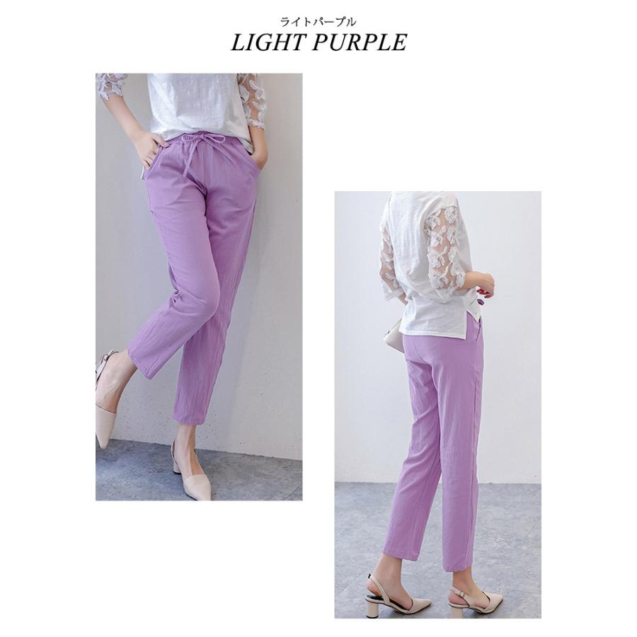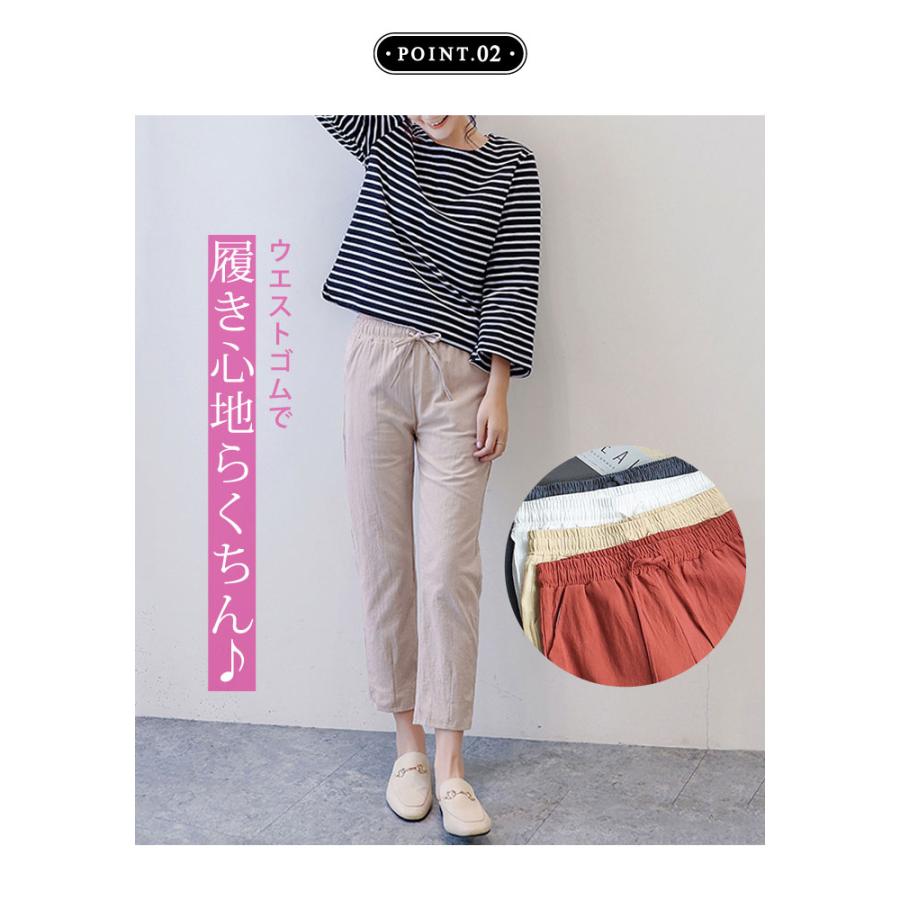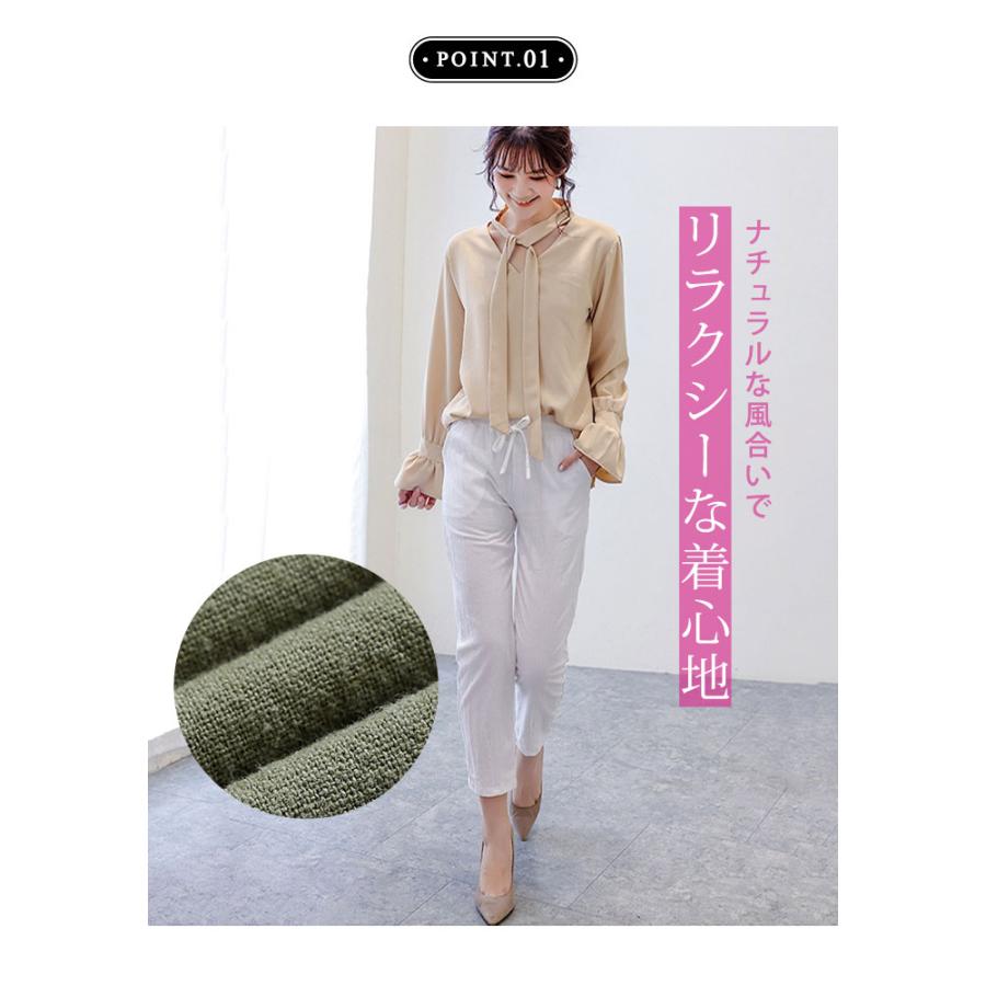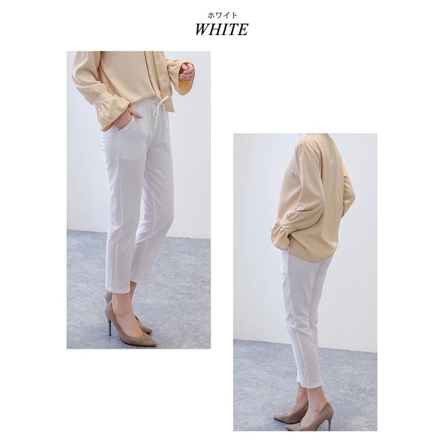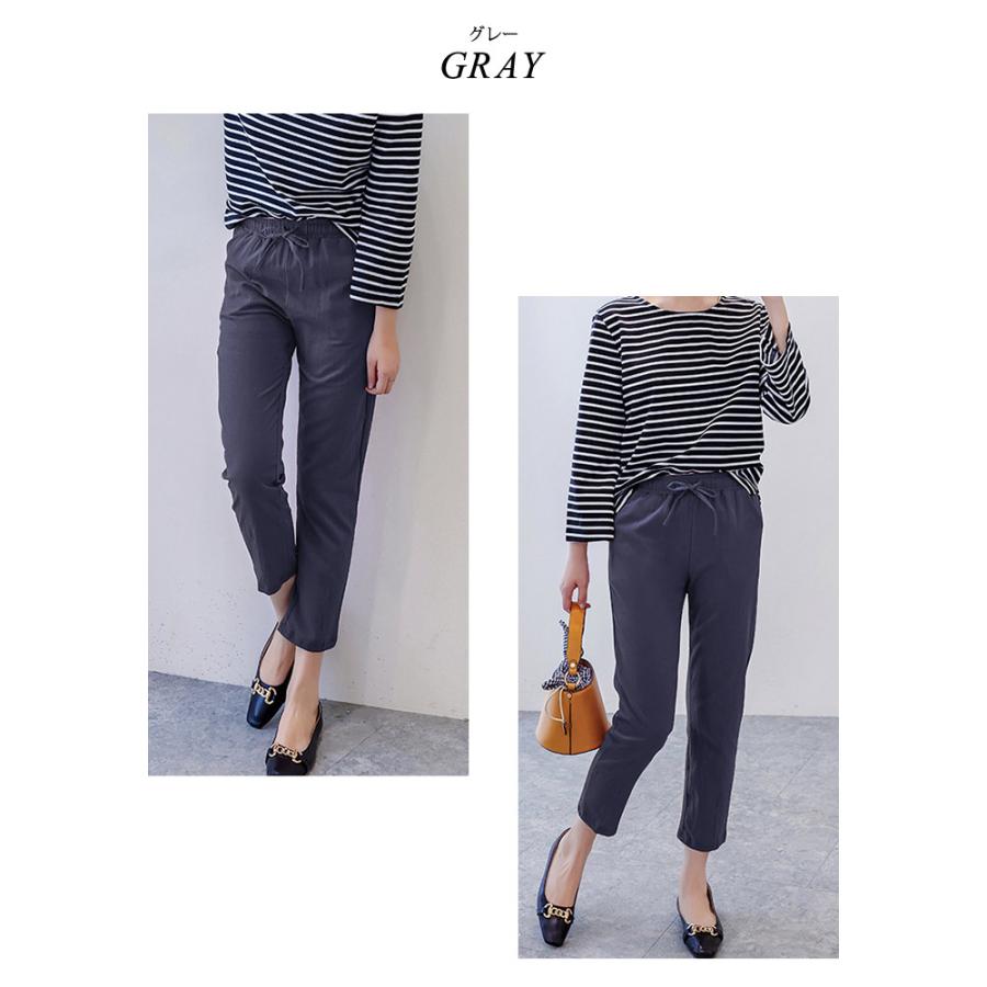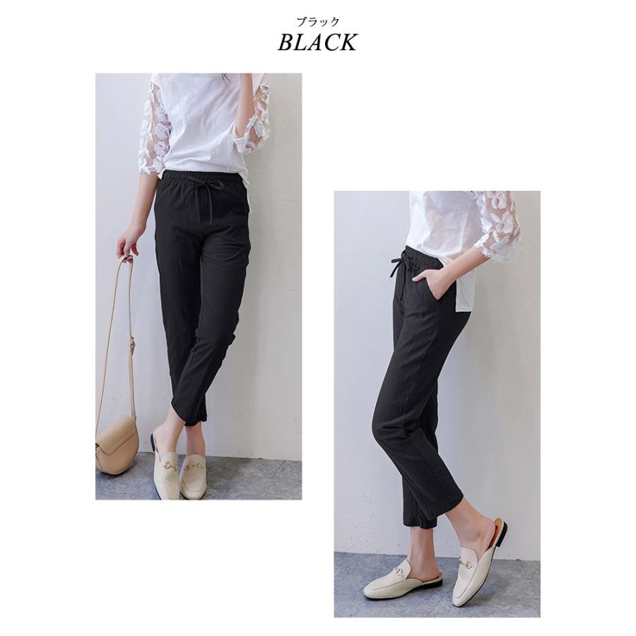 テーパードパンツ レディース 春 黒 白 パンツ クロップド ウエストゴム7分丈 無地 ネイビー グレー ブラック ホワイト ベージュ カーキ