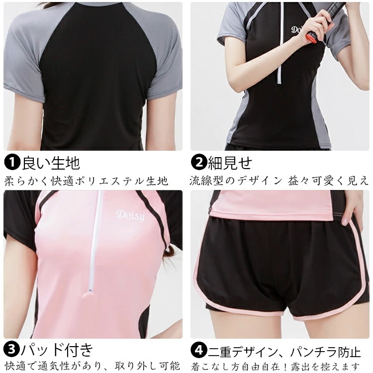 露出控え 水着 レディース 体型カバー 韓国 中学生 高校生 大学生 レギンス かわいい 2点セット セットアップ 水着 おしゃれ 韓国風 パンチラ 防止 ショートパンツ スポーティー ラッシュガード