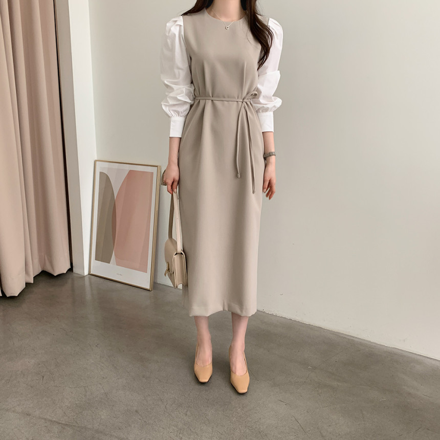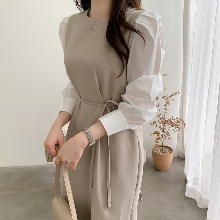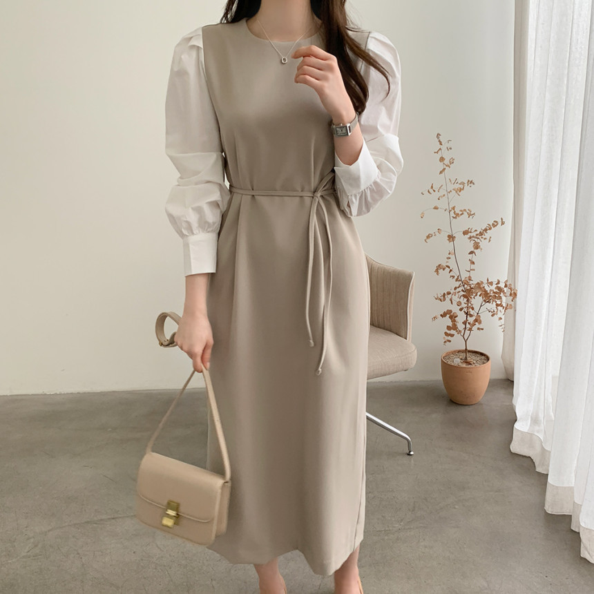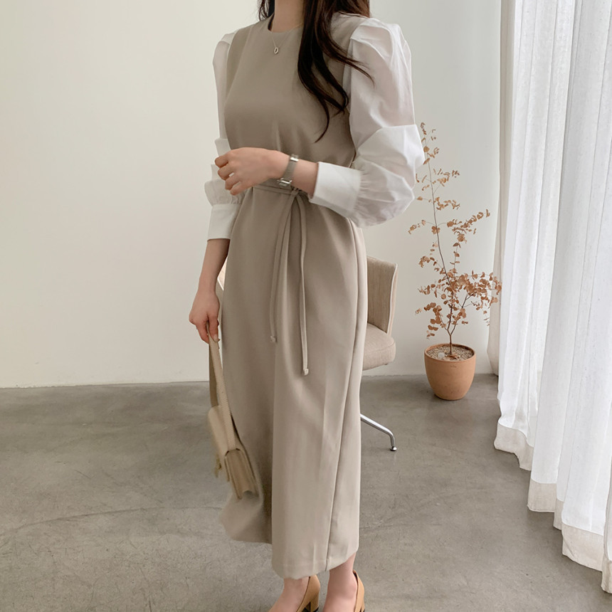 シフォンワンピースの早春新作 ワンピース レディース ブルーのストライプワンピースカジュアルシンプル通勤 OL ファッション 新品追加 長袖ロング マキシ丈ワンピ