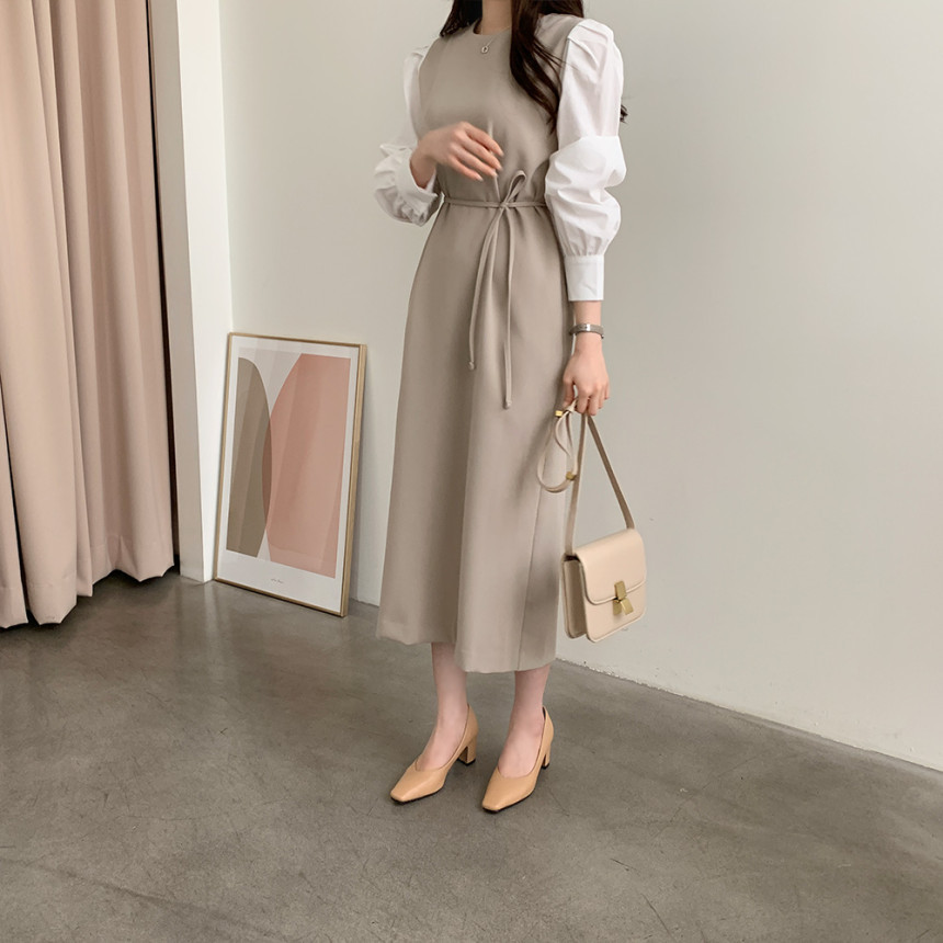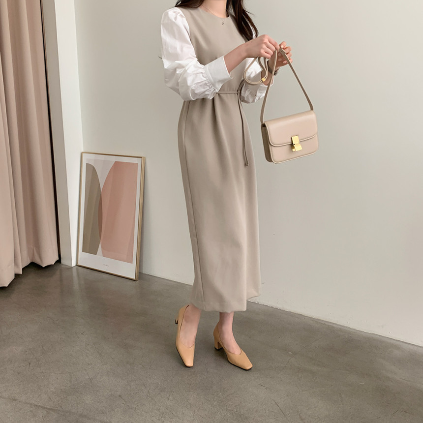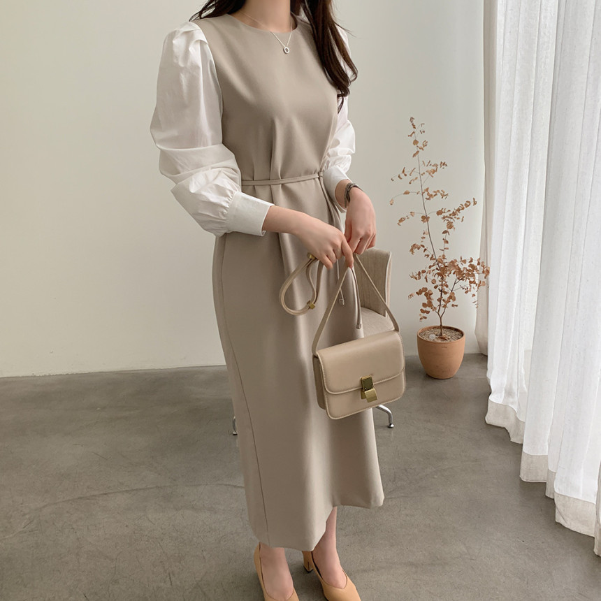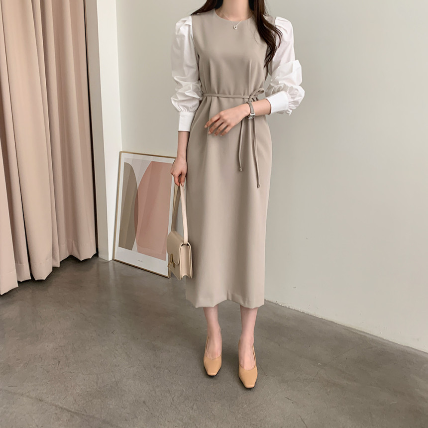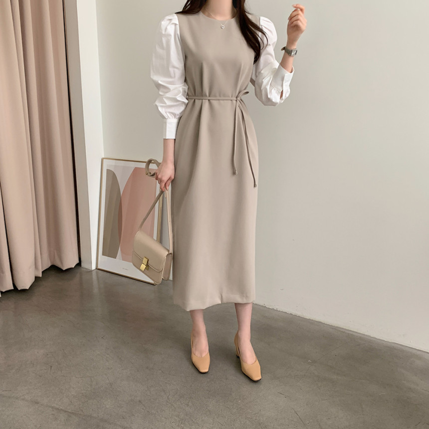 シフォンワンピースの早春新作 ワンピース レディース ブルーのストライプワンピースカジュアルシンプル通勤 OL ファッション 新品追加 長袖ロング マキシ丈ワンピ