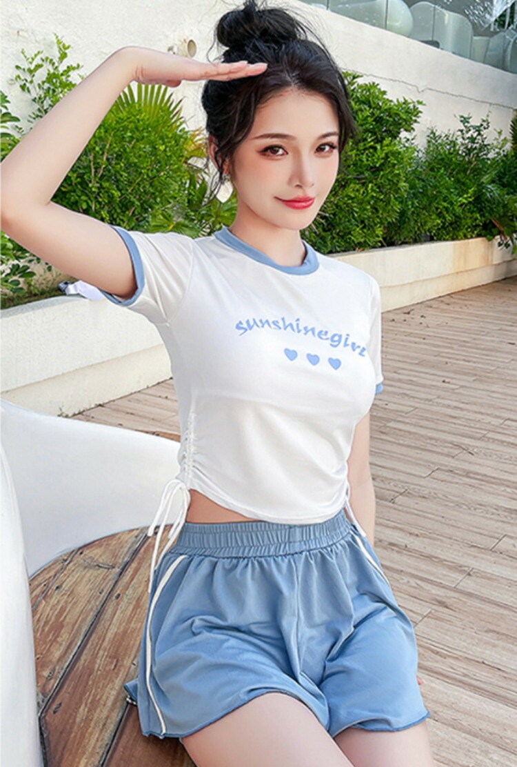 2点セット 水着 露出控え 温泉 レディース 体型カバー ビキニ 半袖 夏 セパレート 黒 青 胸パッド付き ショートパンツ 小胸 水陸両用 おしゃれ キレイ かわいい セクシー ビキニ水着 ファショ