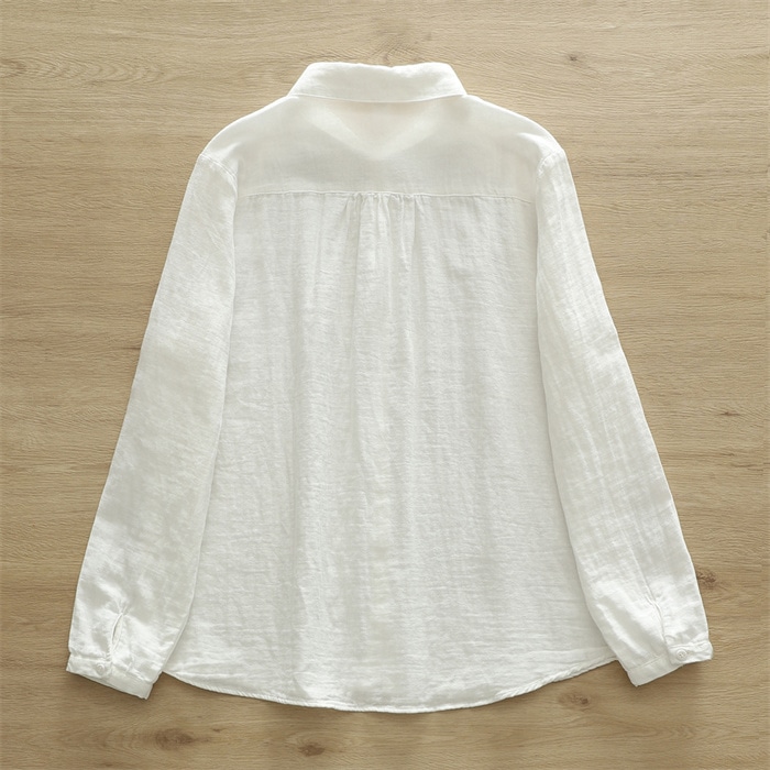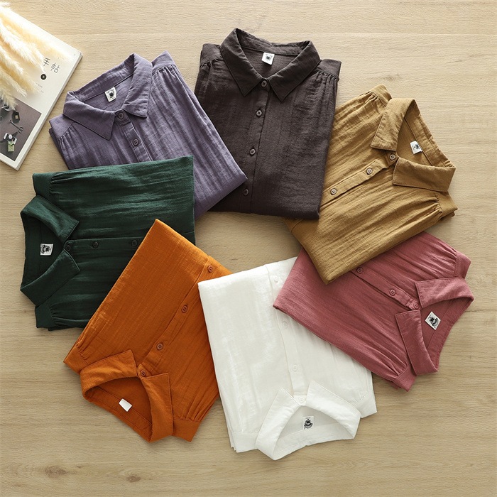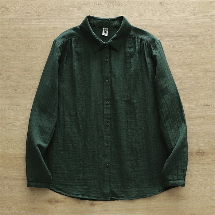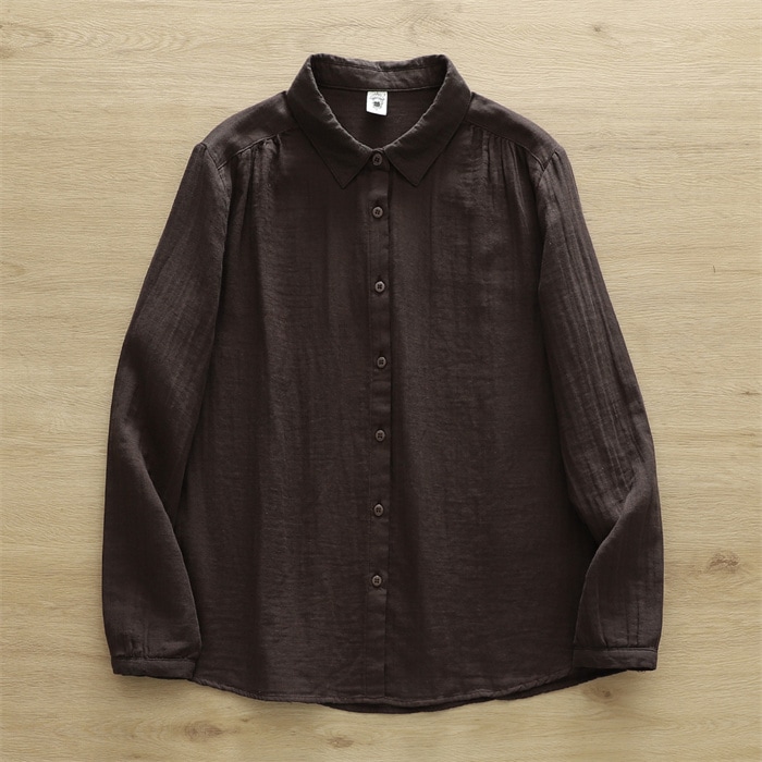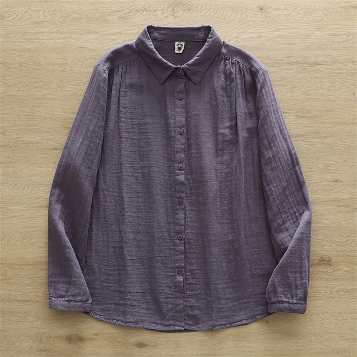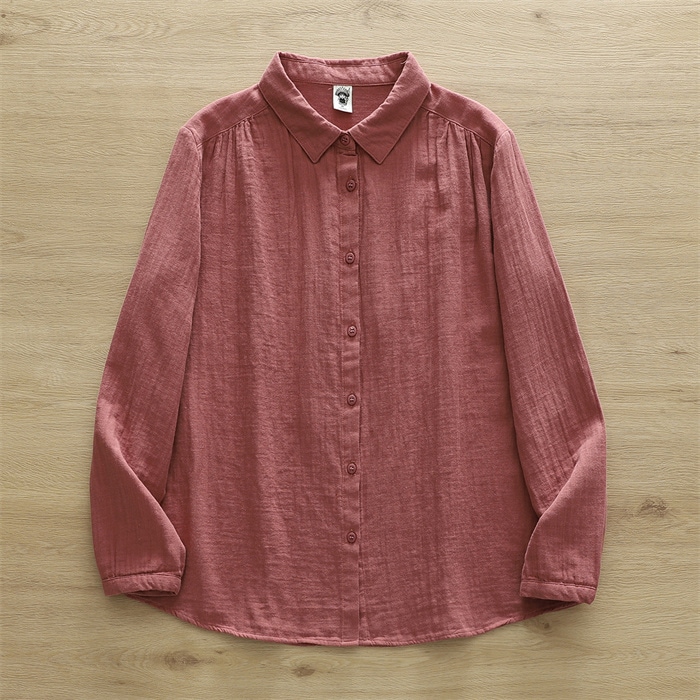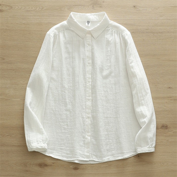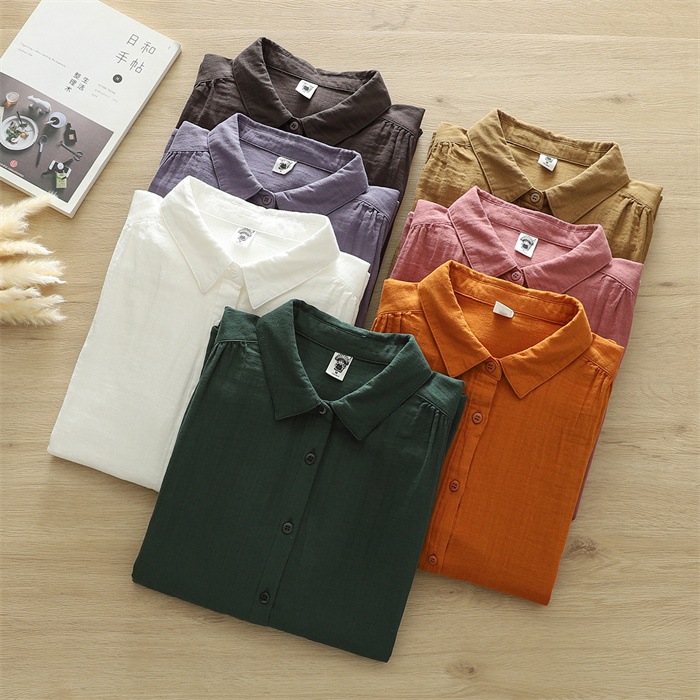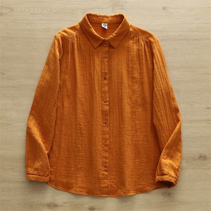 オフェス シャツ レディース 長袖 ガーゼ ブラウス おしゃれ オフィス 面接 トップス ダブルガーゼ コットン 綿100% 丸襟 前開き カジュアル 無地 体型カバー オフェス シンプル 着回し 通勤 OL