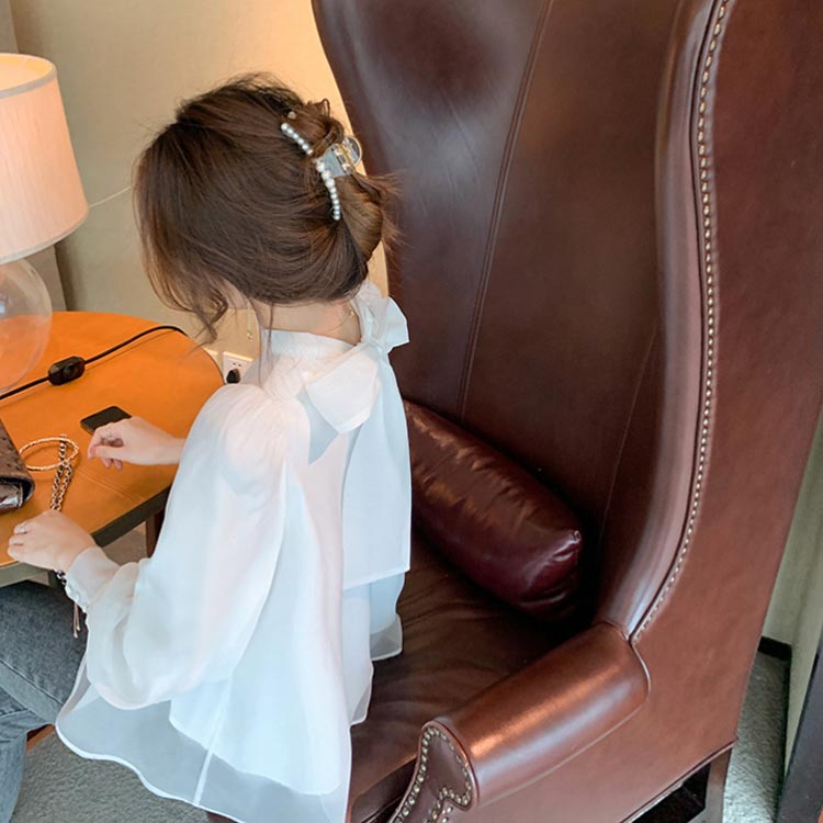 シアースリーブ ドッキングシャツ ボウタイシャツブラウス
