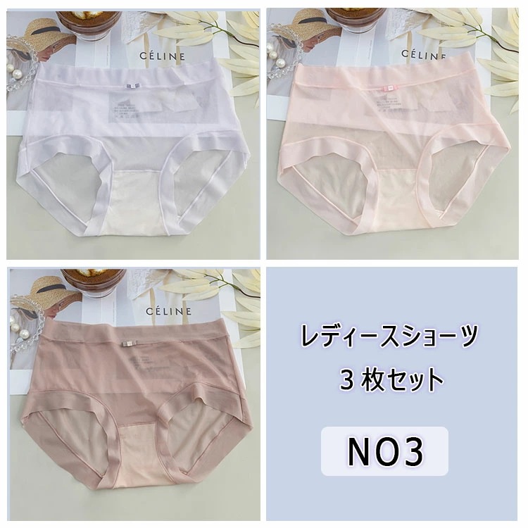 ショーツ 3枚セット レディース 薄い シースルー セクシーパンティー アイスシルク 清涼感 滑らか 柔軟 高弾力 快適フィット アウターに響きにくい スタンダード ノーマルレッグショーツ フリーサイ