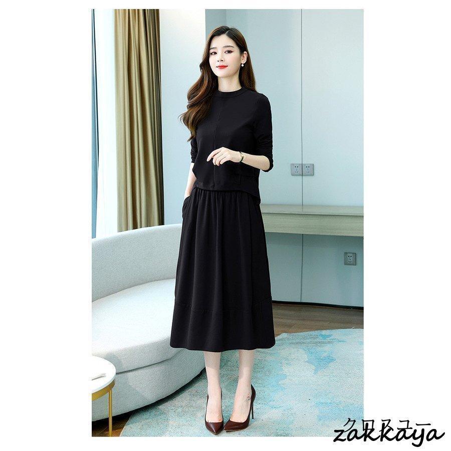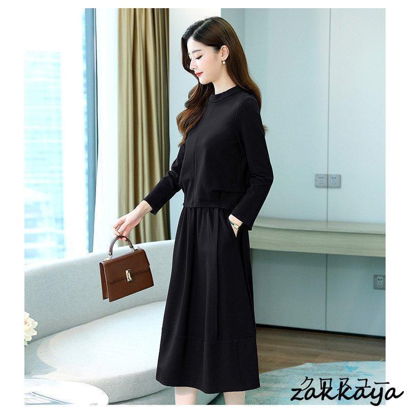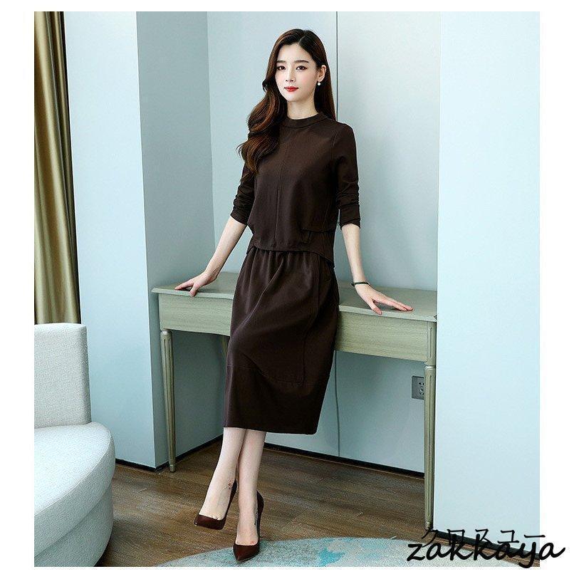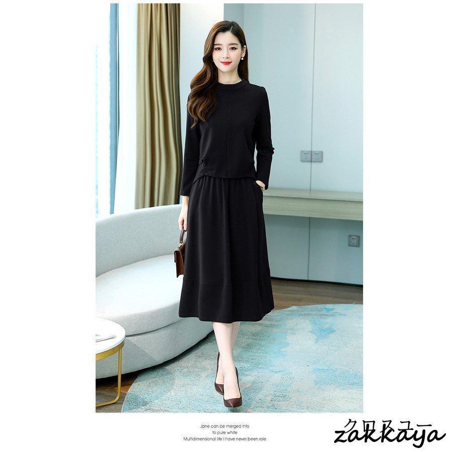 ワンピースセットアップ レディース 40代 膝丈 秋 春 長袖 50代 きれいめ 無地 通勤 オシャレ デート 長袖ロング マキシ丈ワンピ