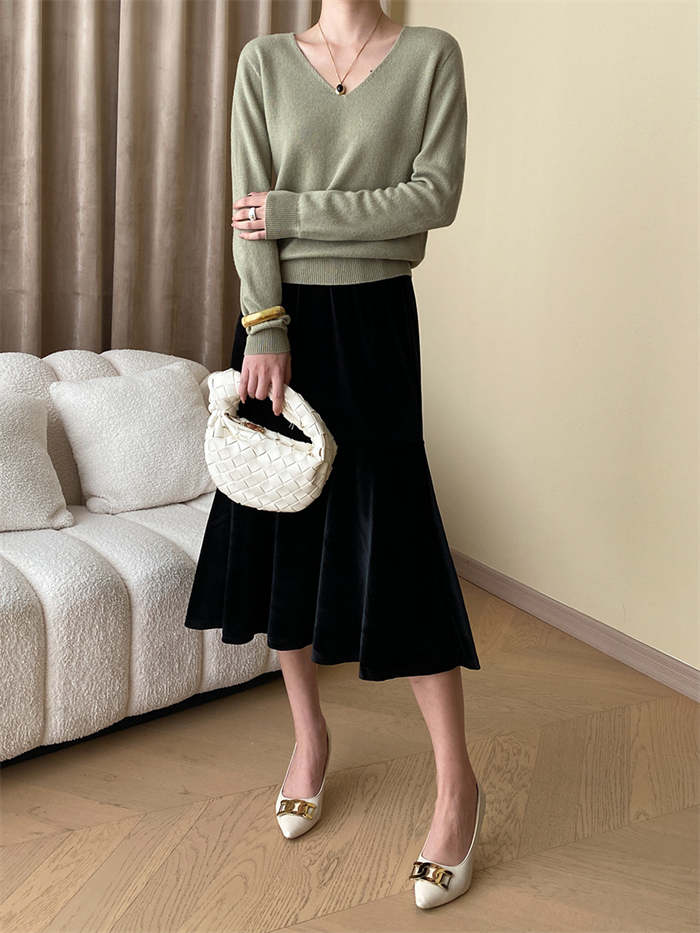 スカート レディース マーメイド ベロアスカート ベルベット 秋 冬 ボトムス 無地 ミモレ丈 ベロア ウエストゴム Aライン 着痩せ 光沢感 体型カバー おしゃれ ゆったり カジュアル かわいい エ
