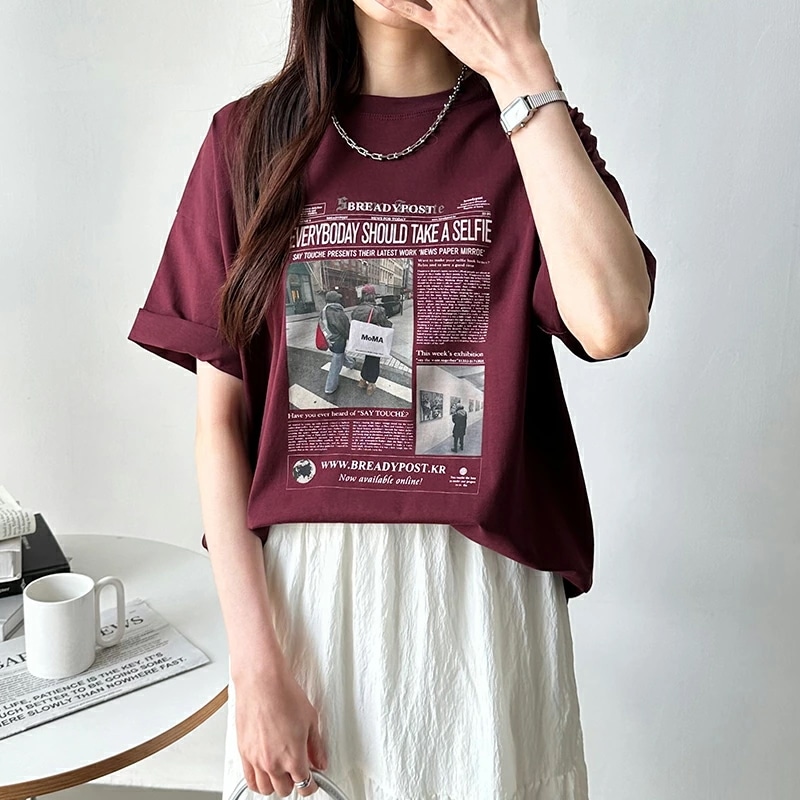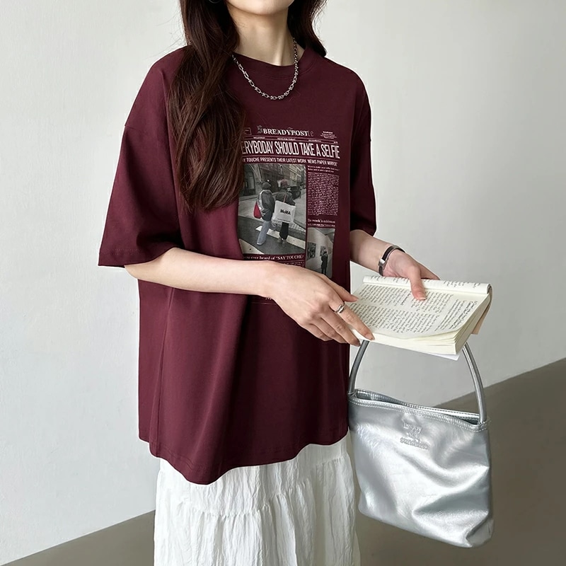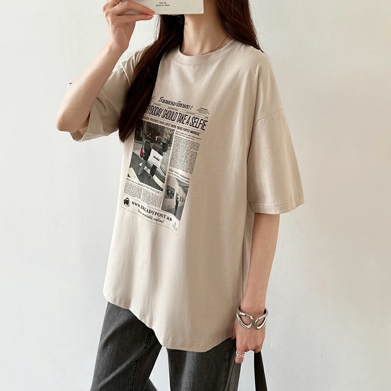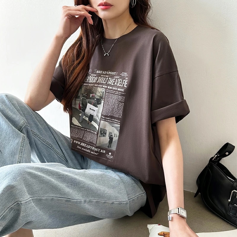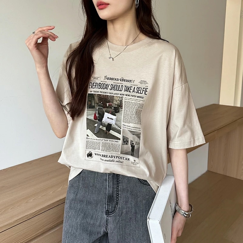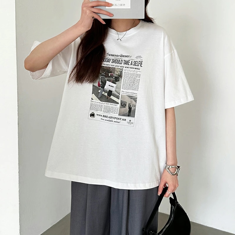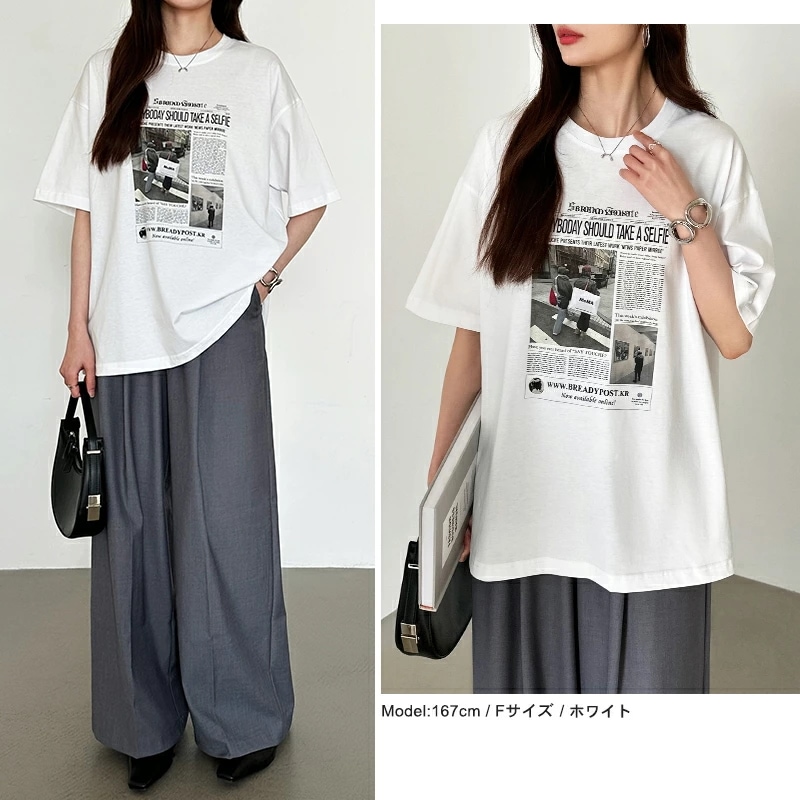 フォトTシャツ ロゴtシャツ 綿100% Tシャツ 半袖 ロゴ トップス レディース カットソー ゆったり クルーネック 五分袖 綿 半袖tシャツ オーバーサイズ ロング