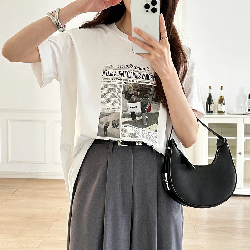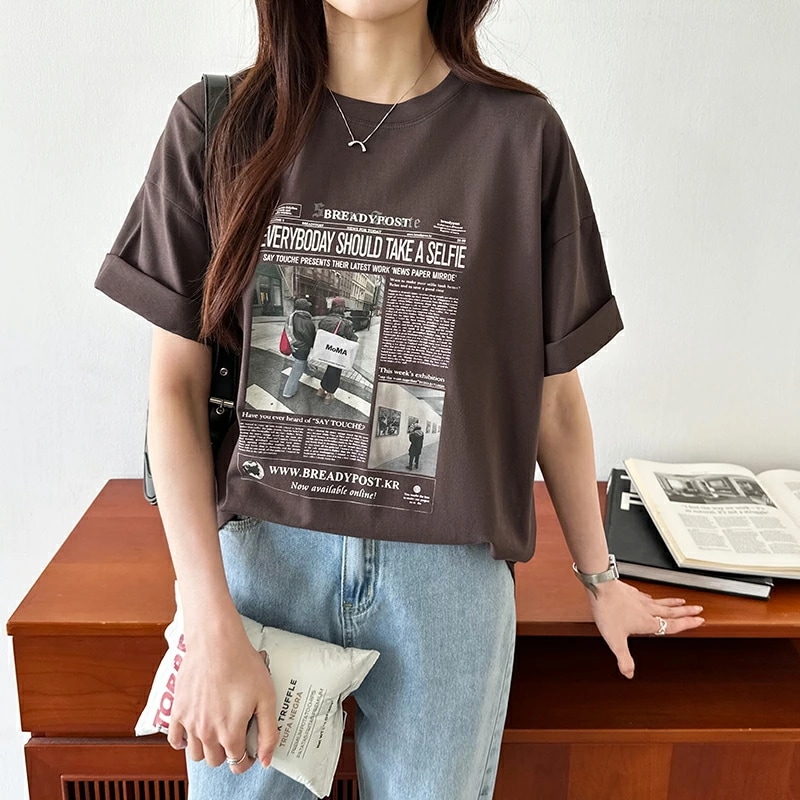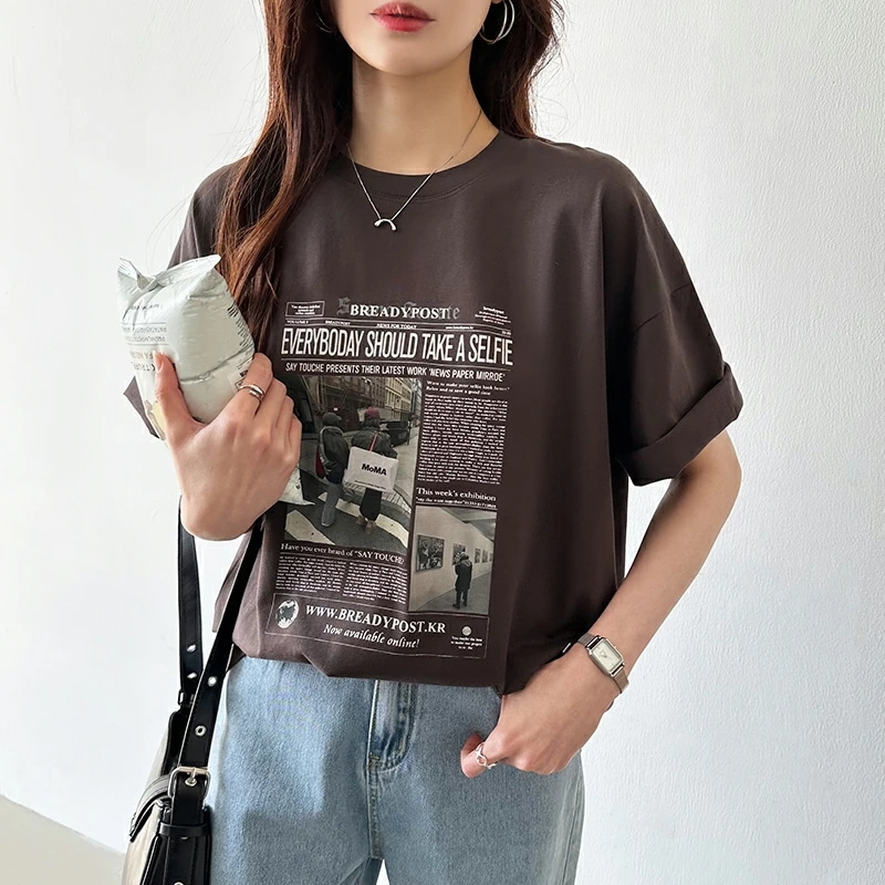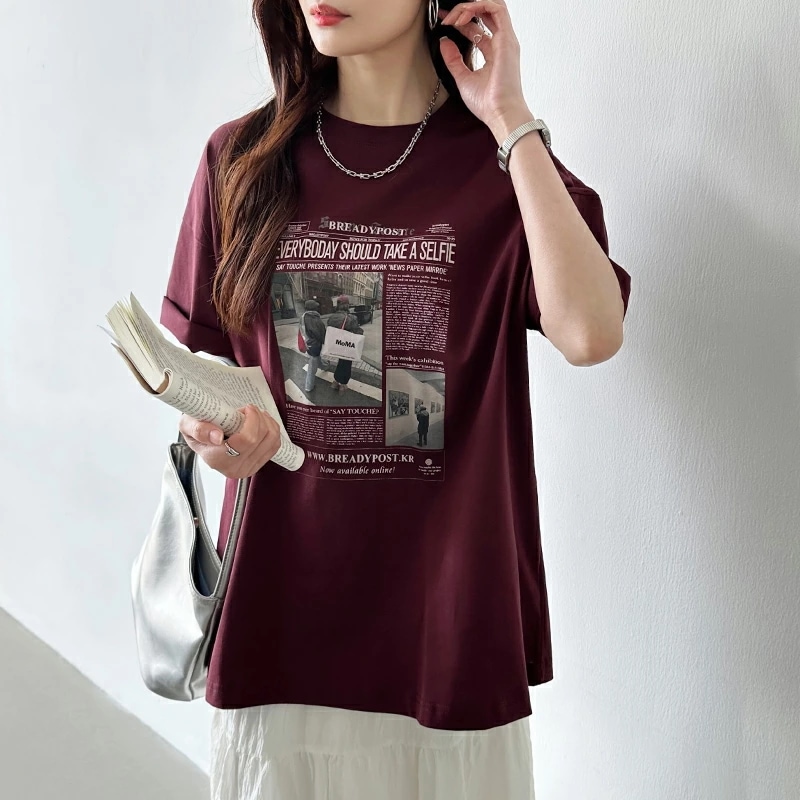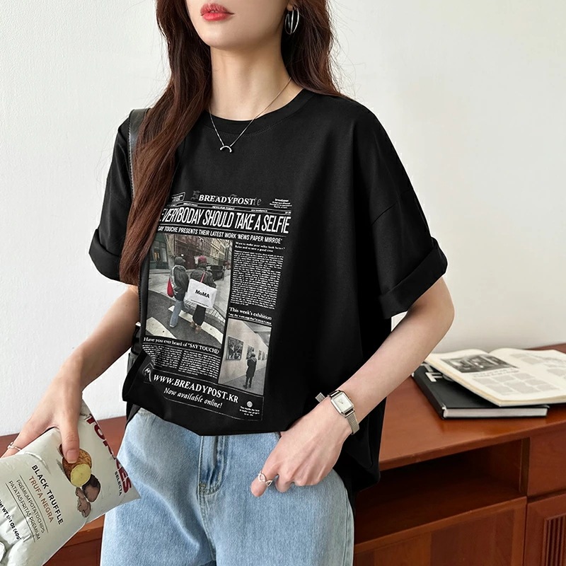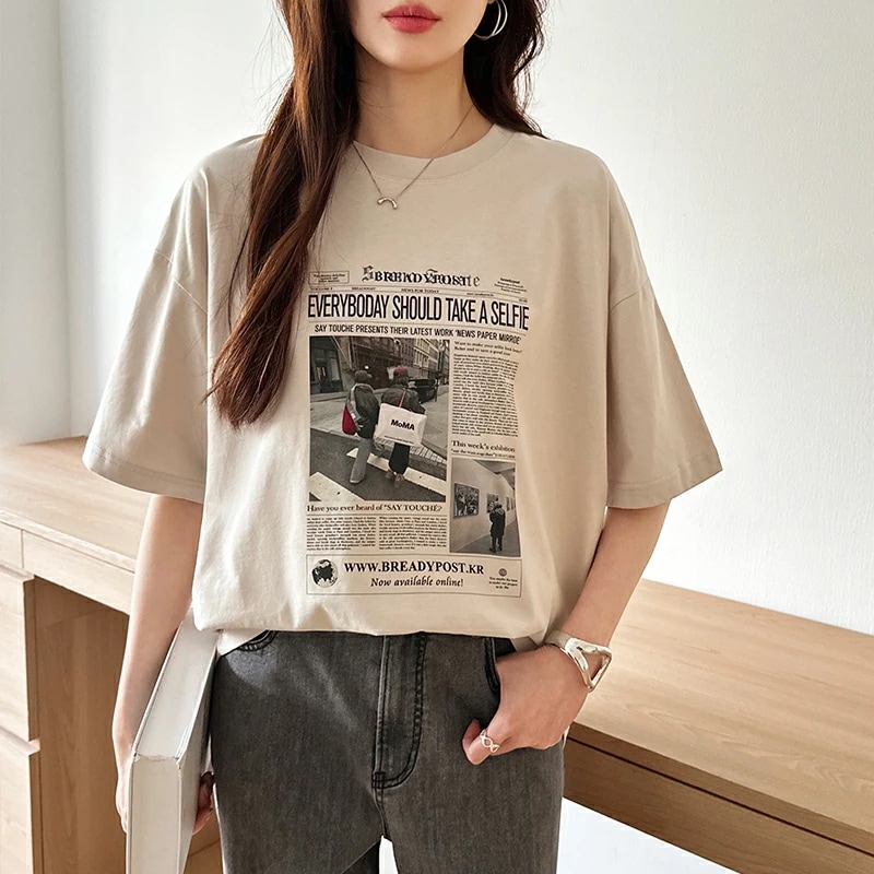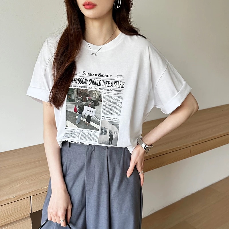フォトTシャツ ロゴtシャツ 綿100% Tシャツ 半袖 ロゴ トップス レディース カットソー ゆったり クルーネック 五分袖 綿 半袖tシャツ オーバーサイズ ロング