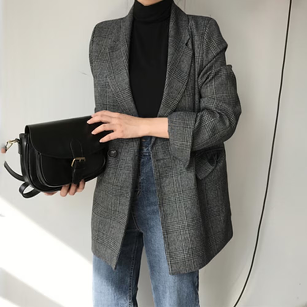選べる2type グレンチェックテーラードジャケット スーツジャケットルーズブルゾン トレンチコート