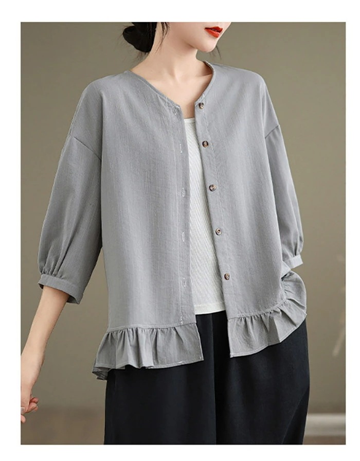 カーディガン レディース トップス クルーネック 七分袖 ブラウス ショート丈 アウター カジュアル シンプル 大人 可愛い ゆったり 大きいサイズ 体型カバー 細見え ベーシック 無地 着回し 冷房