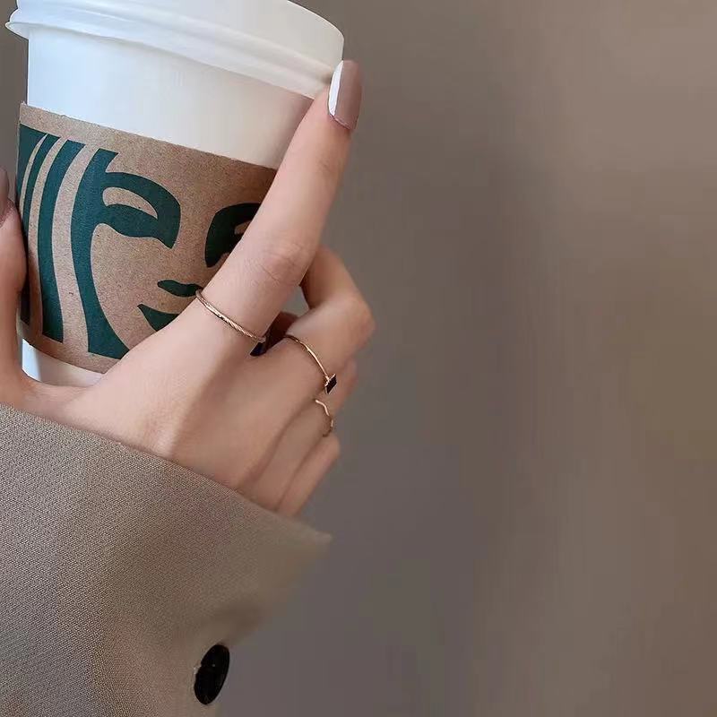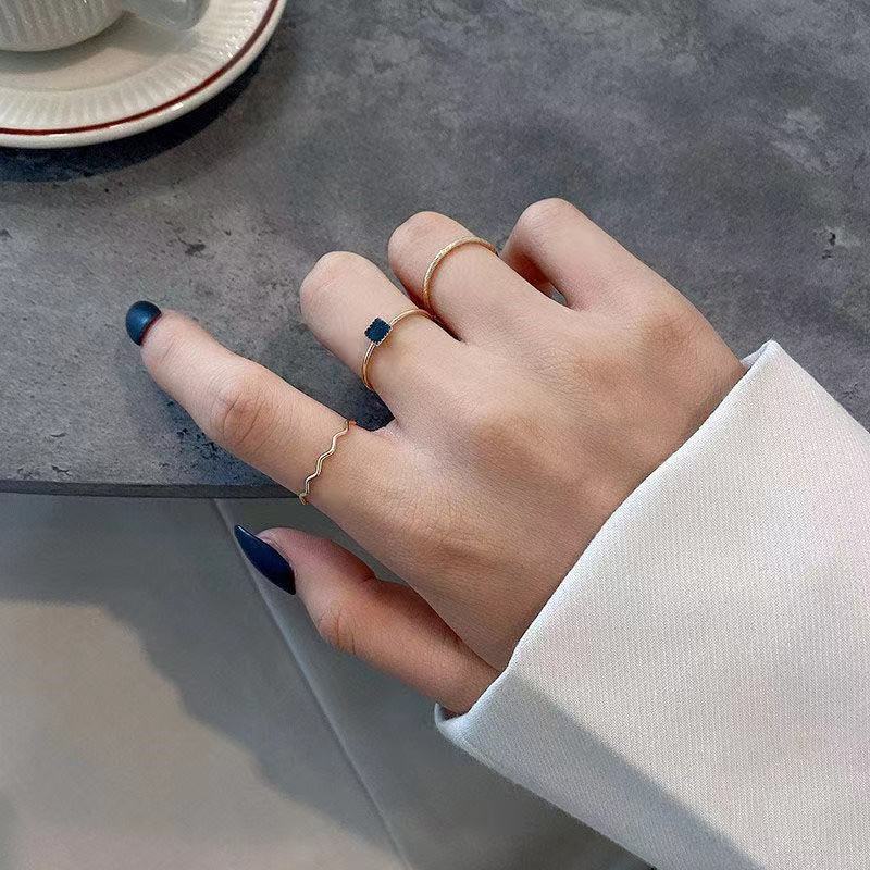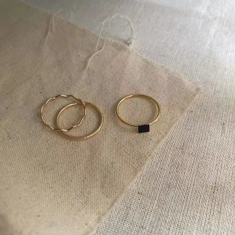 ブラック ジルコニア プレーンリング 3点セット リング レディース プレミアム感 シンプル スモールスクエア リング ニッチ デザイン フィンガーリング 韓国ファッション