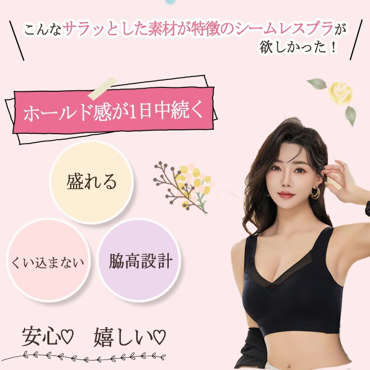 2点で300 円オフ シームレス ブラ レディース 谷間メイク ノンワイヤー 一体型パッド 脇高設計 単品 ブラジャー リラックス インナー 通気性 カップ付き パッド付き 美しく盛れる 楽々