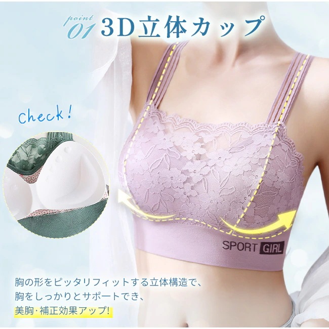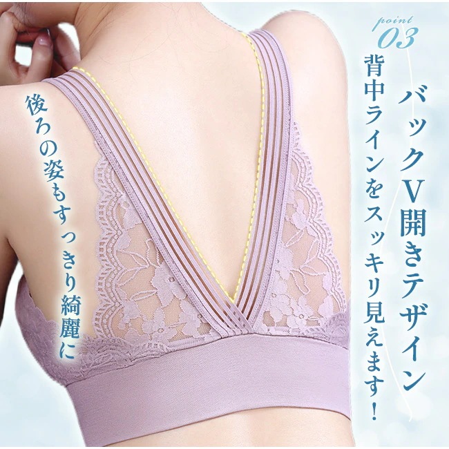 24時間使える ナイトブラ 背中開き ブラジャー 美胸 レース 後ろVレース 涼しい ノンワイヤーブラ レディース インナー ひんやり カップ付 肌着 取り外し可能 下着