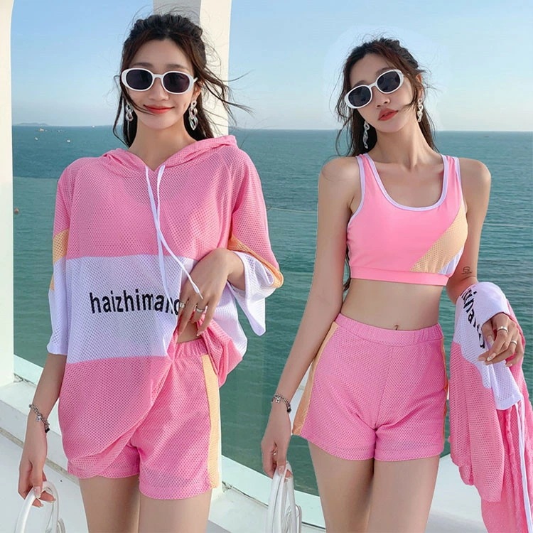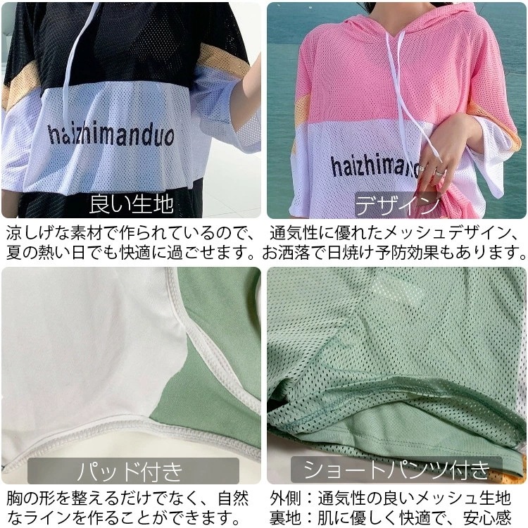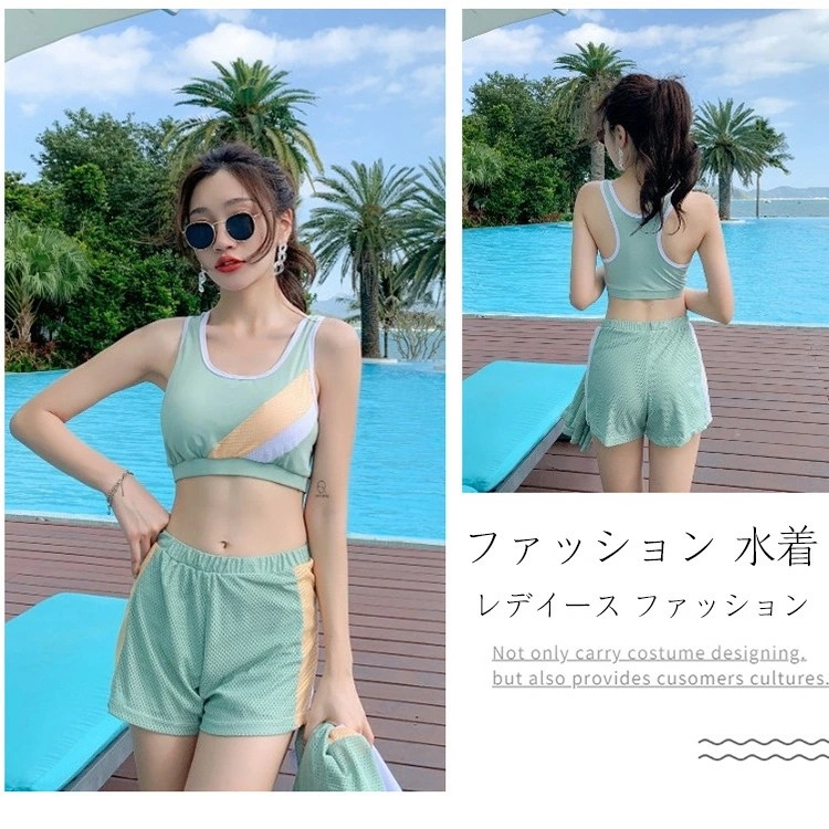 水着 レディース 中学生 韓国 水着 高校生 スポーツ 女の子 体型カバー 露出控え セット スポーティー 3点セット セパレート タンキニ ショートパンツ ファション 韓国風 日焼け防止 UVパーカ