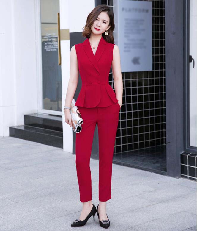 2点セット パンツスーツ レディース スーツ ビジネススーツ 袖なしジャケット 九分丈パンツ リクルート 通勤 OL ママスーツ 母親 卒園式 入園式 卒業式 お宮参り 七五三 セットアップ スーツセ