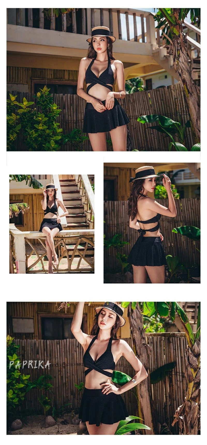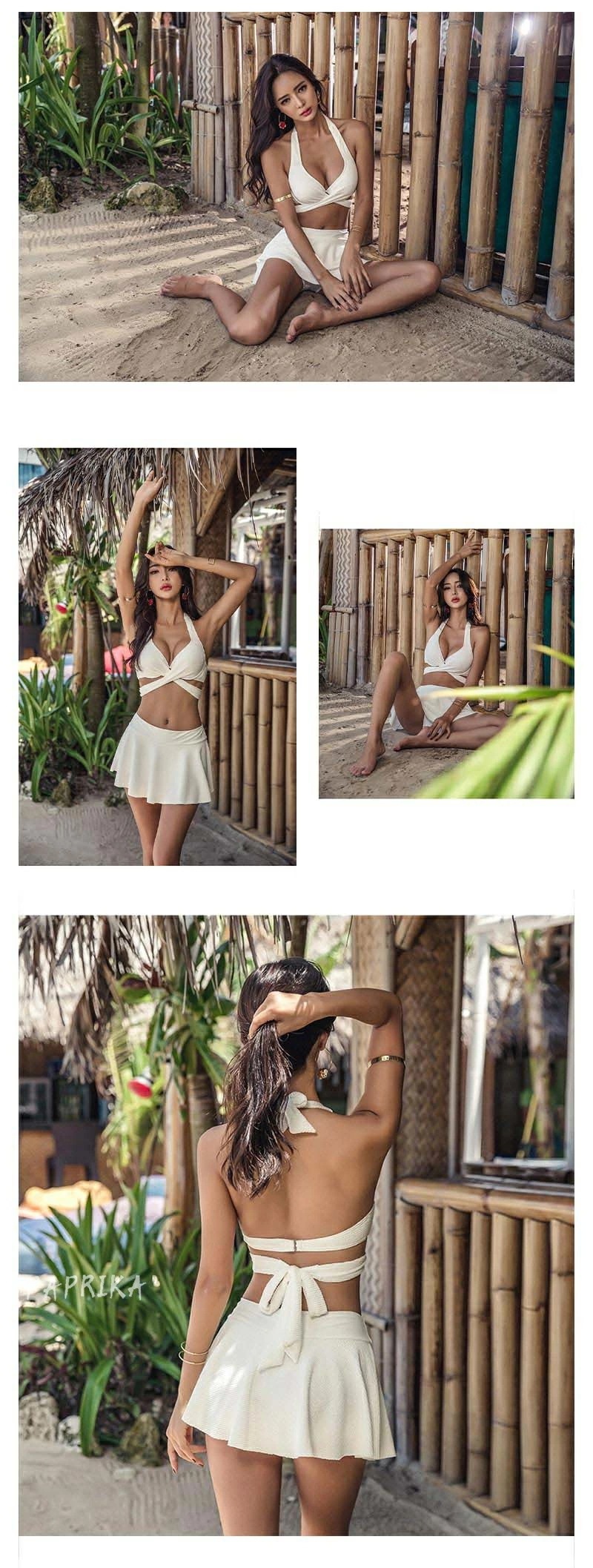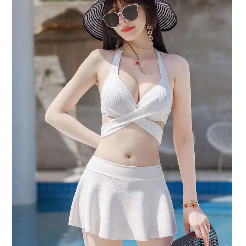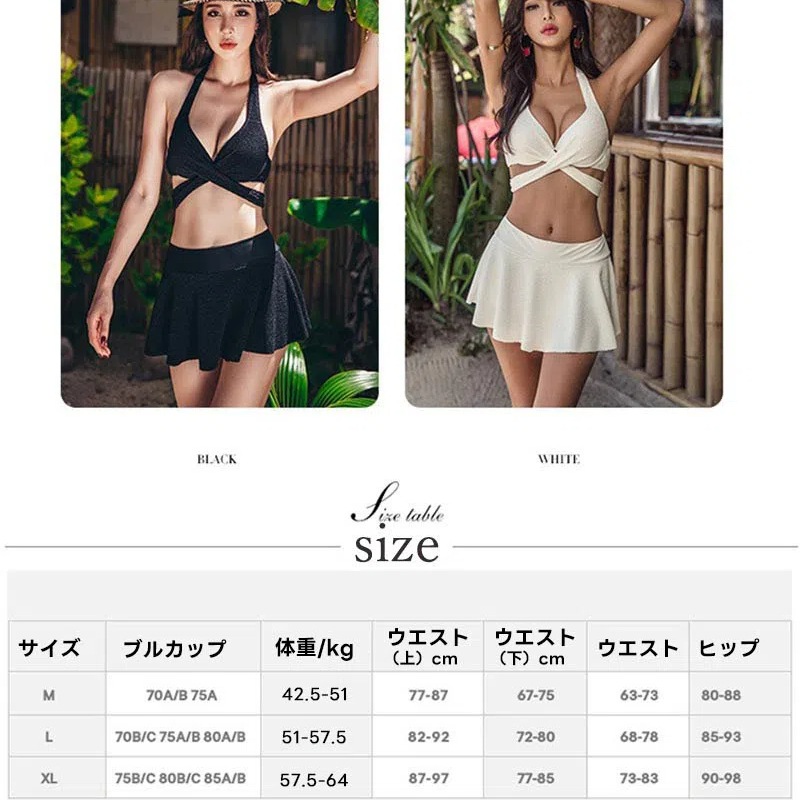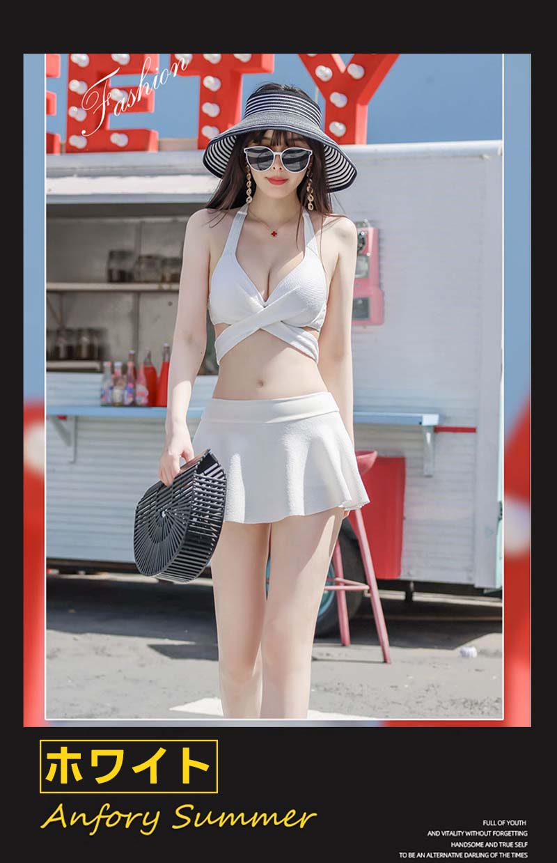 水着 盛れる ビキニ スカート セクシー レディース 小胸 谷間 クロスデザイン 2点セット みずぎ パッド付き ワイヤー入り Vネック キャミソール ホルターネック 美バスト カシュクール スイムウ
