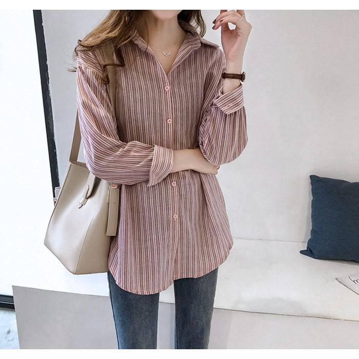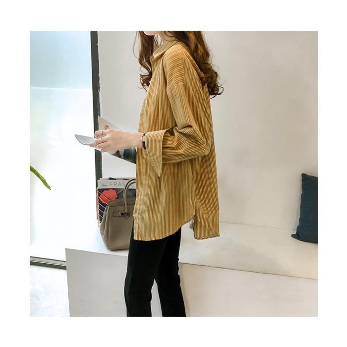 シャツ レディース ルーズシャツ 長袖 ゆったり ライプ チュニック 大人 春 トップス ロング ブラウス スト 20代 30代 40代 ママ 母