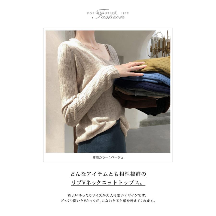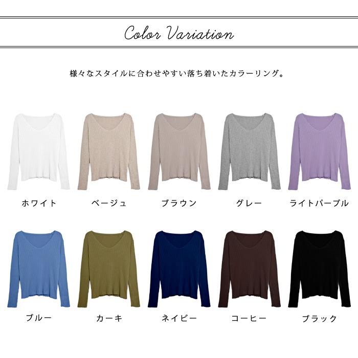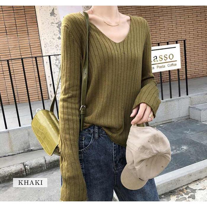 ニット レディース トップス 春 無地 Vネック 黒 長袖 セーター ブラック ホワイト グレー ベージュ パープル ブルー カーキ ネイビー