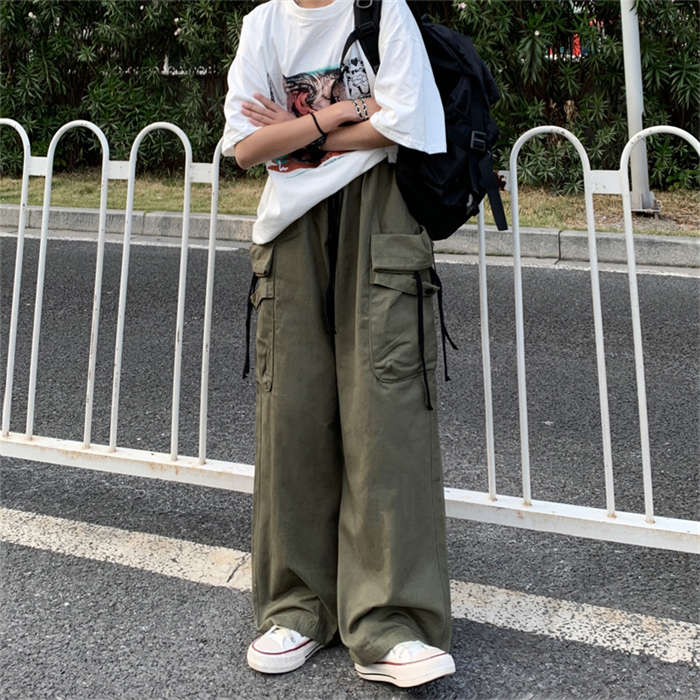 ワイドパンツ カーゴパンツ メンズ レディース ミリタリー 春 夏 秋 カーゴ コットン ガウチョパンツ 無地 ボトムス ポケット 長ズボン 大きいサイズ ウエストゴム 体型カバー 着回し アウトドア