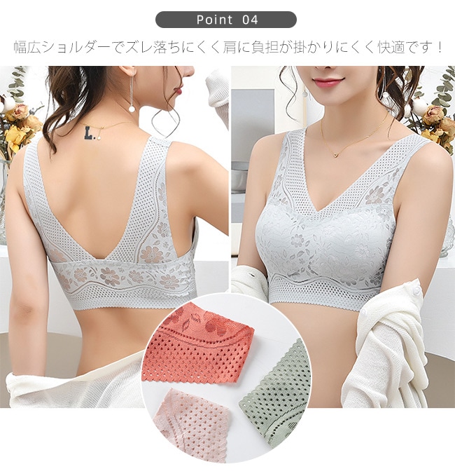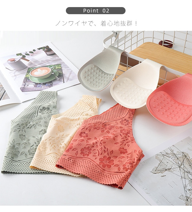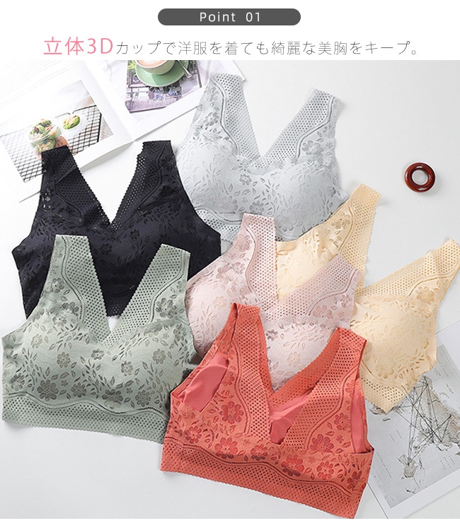 シームレスブラ ノンワイヤー ナイトブラ ブラ 24時間使える ブラジャー レース パッド付き 取り外し可能 美シルエット レディース 女性 肌着 昼夜兼用 着痩せ 美胸 インナー 下着