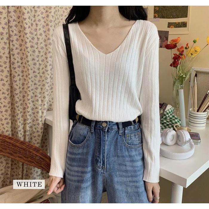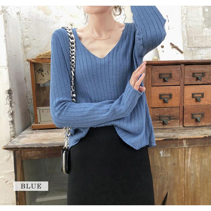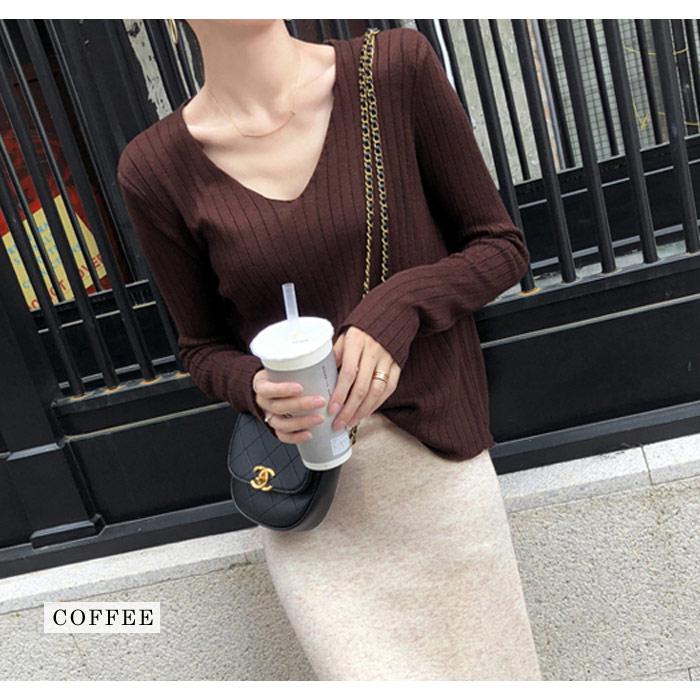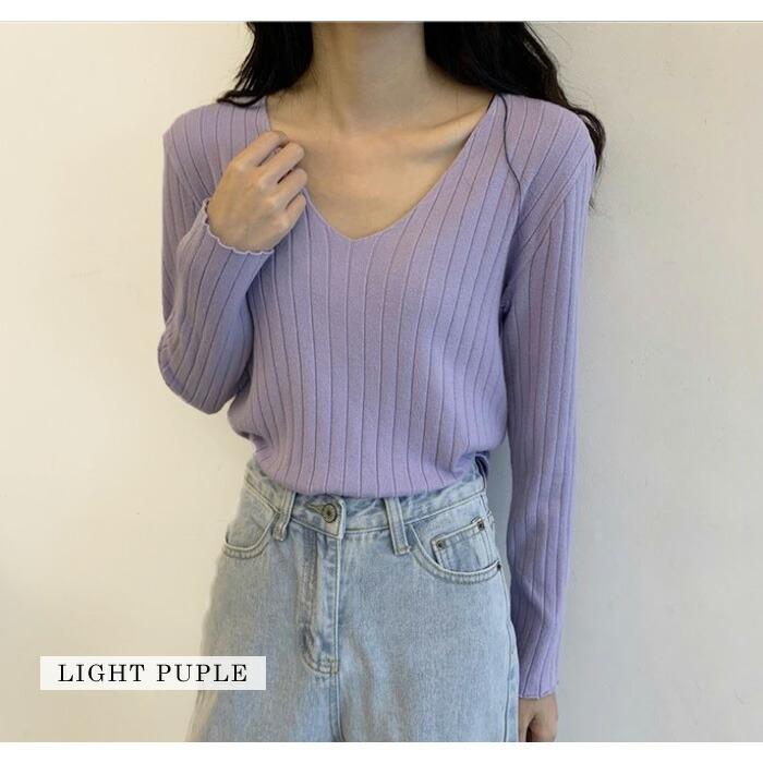 ニット レディース トップス 春 無地 Vネック 黒 長袖 セーター ブラック ホワイト グレー ベージュ パープル ブルー カーキ ネイビー