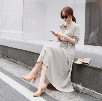 新色追加 レディース ワンピース プリーツワンピース 秋ワンピ ロング ワンピース ウエストベルト付き フレンチスリーブ 切り替え ふんわり きれいめ 大人 可愛い 通