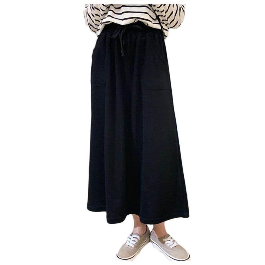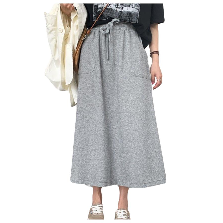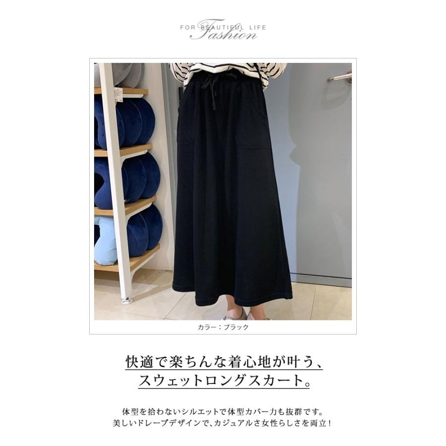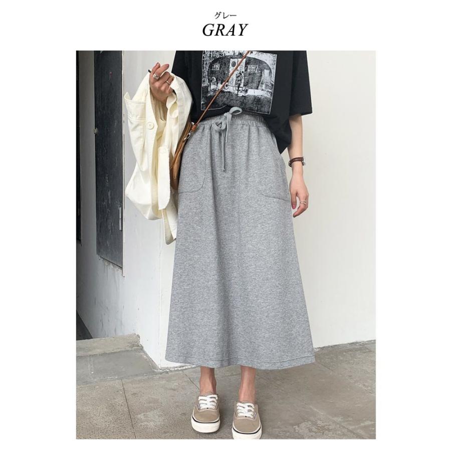 スカート レディースロング 春 黒 スウェットスカート ウエストゴム ブラック グレー ロング フレアスカート ミモレ ミディアムスカート