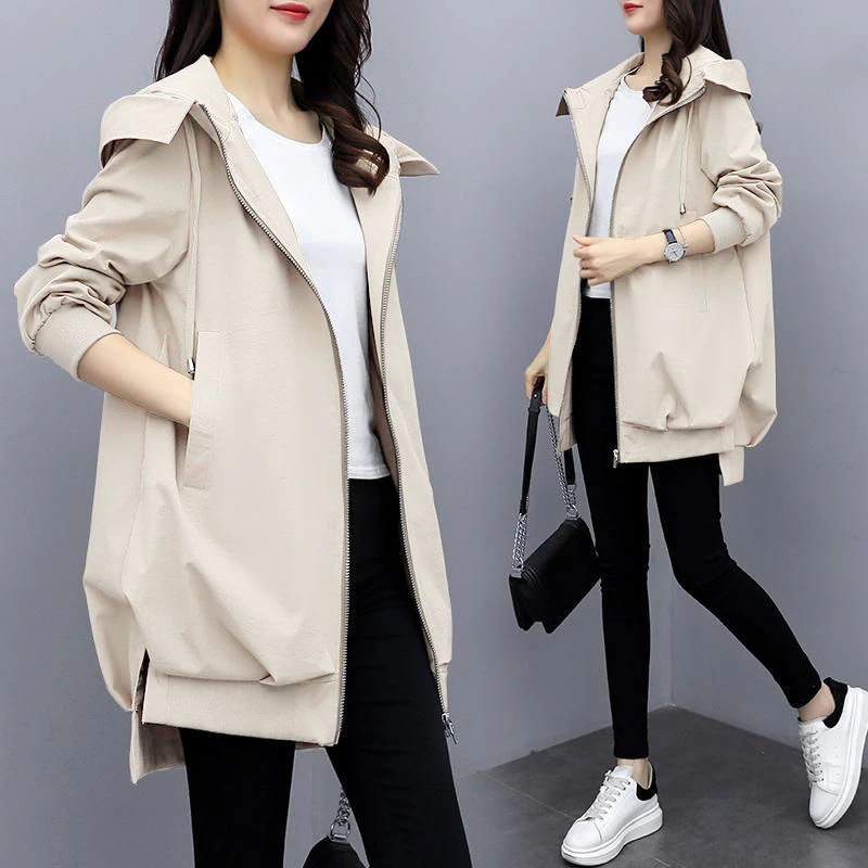 春季アウター フード付きトレンチコート レディース 防風ジャケット 気質通勤トップス 大きいサイズ ゆったりカジュアル軽量 韓国ファッション