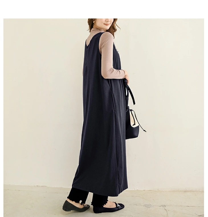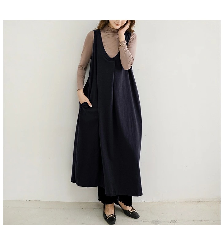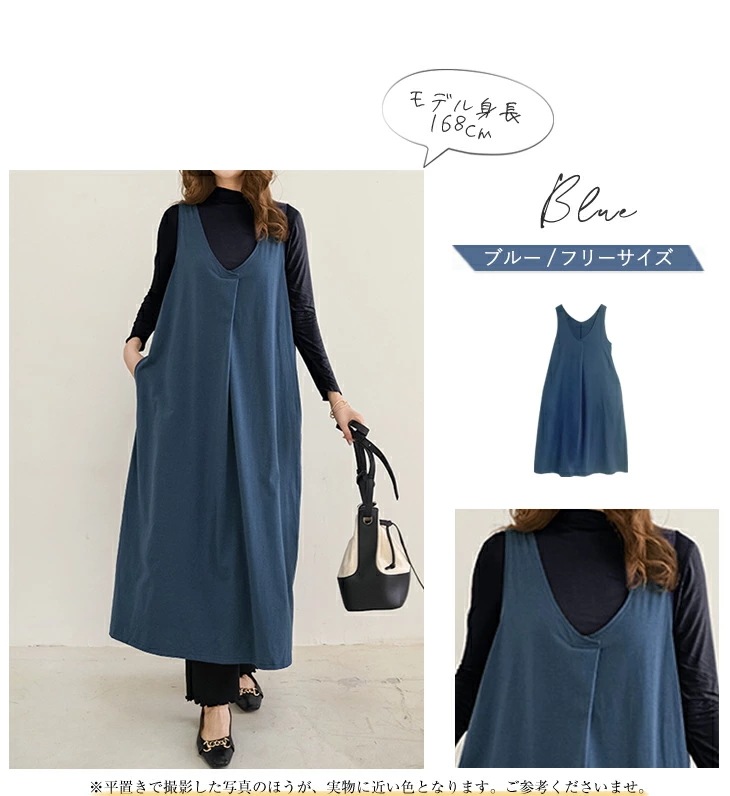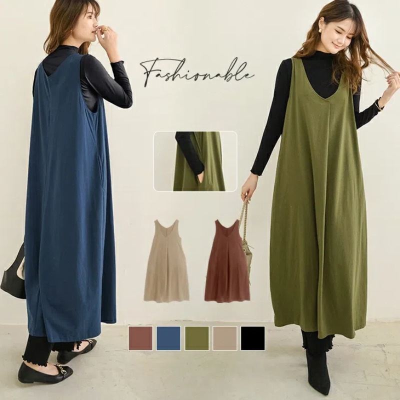 ワンピース サロペット オールインワン Vネック ロング丈 カジュアル ゆったり 体型をカバー 重ね着 レイヤード マタニティ オフェス 通勤 レディースファッション 20代 30代 40代 50代