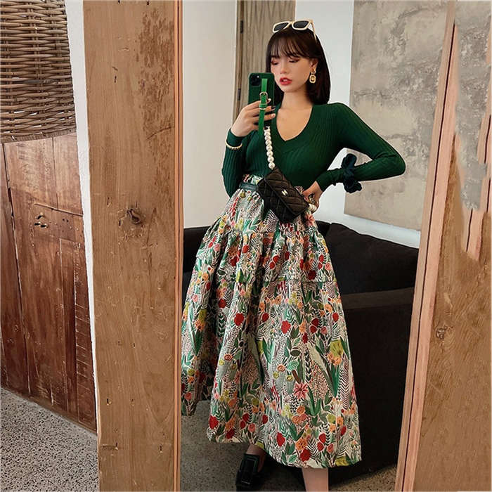 スカート ロング ミモレ丈 レディース ロングスカート 秋冬 秋 ボトムス 柄 ミモレ丈スカート フレア ロング Aライン 花柄 カジュアル おしゃれ 可愛い かわいい きれいめ 20代 30代 40