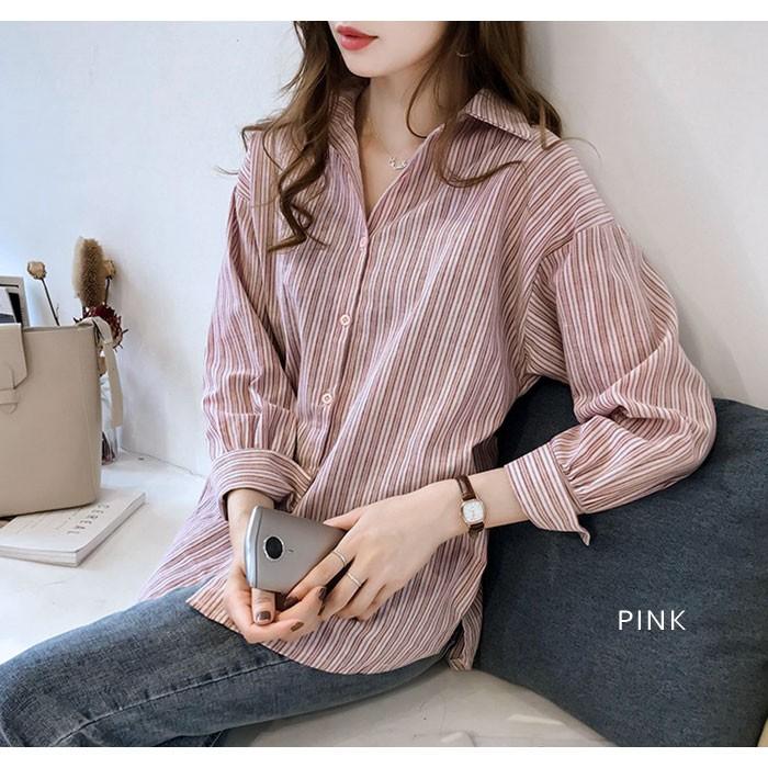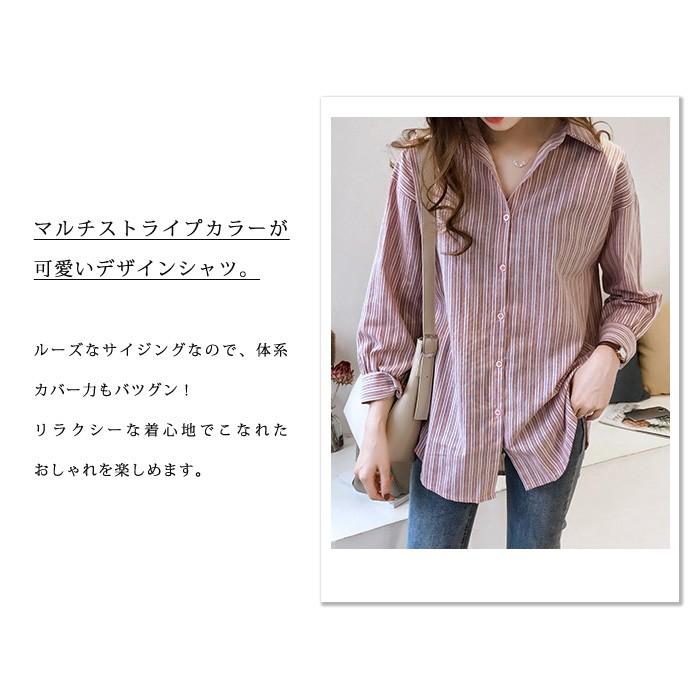 シャツ レディース ルーズシャツ 長袖 ゆったり ライプ チュニック 大人 春 トップス ロング ブラウス スト 20代 30代 40代 ママ 母